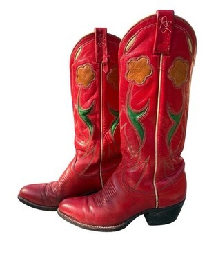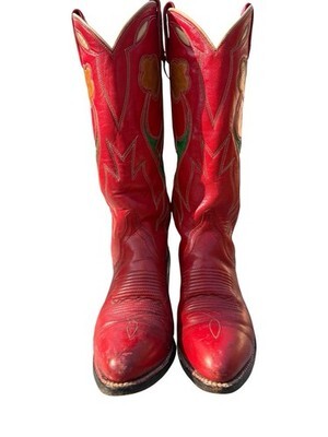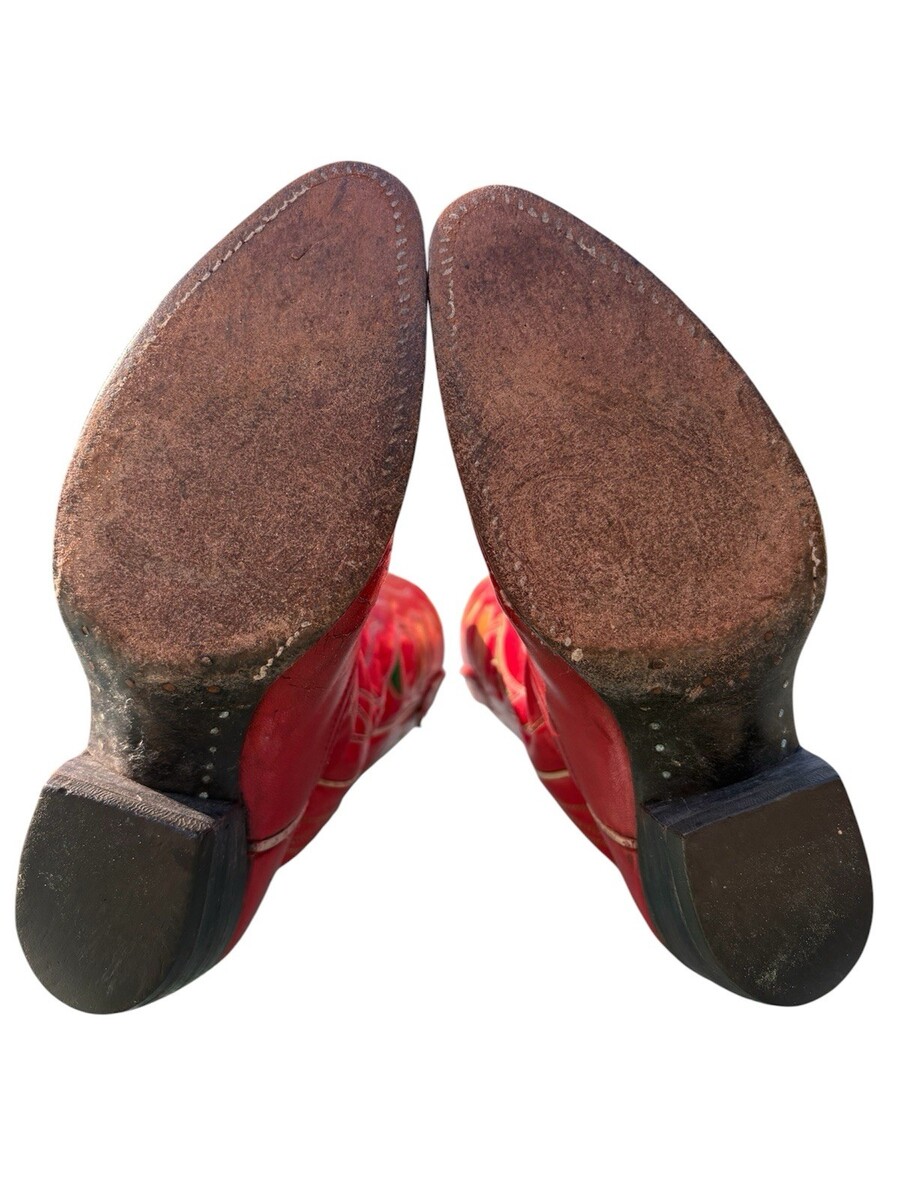 Ralph Lauren Polo Western Cowboy Boots Vintage 1980s Red Leather Flower Inlay 5