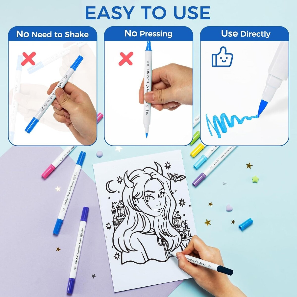 High-opacity Watercolor Paint Pens - 36 Vibrant Colors Dual Brush/Fine Tips