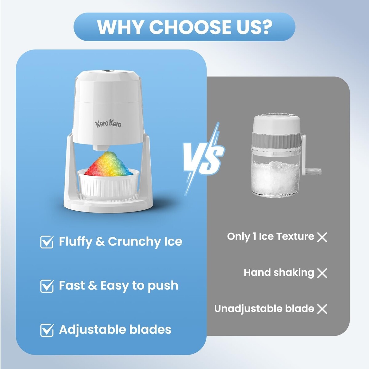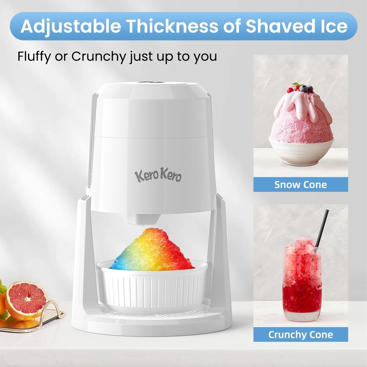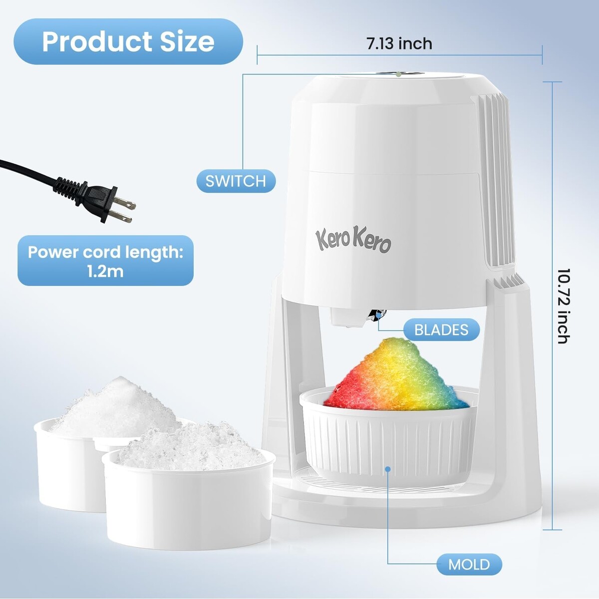 High-quality stainless steel blade effortlessly creates fluffy shaved ice.