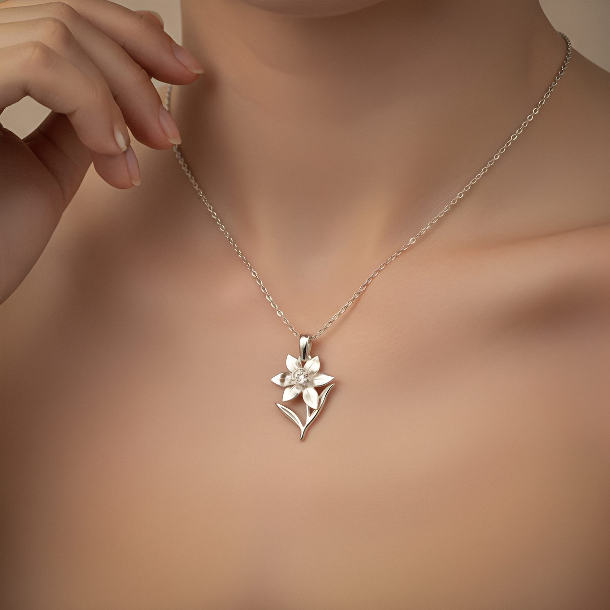Daffodil Flower Necklace | 14K Gold Plated Silver Jewelry | Nature Inspired