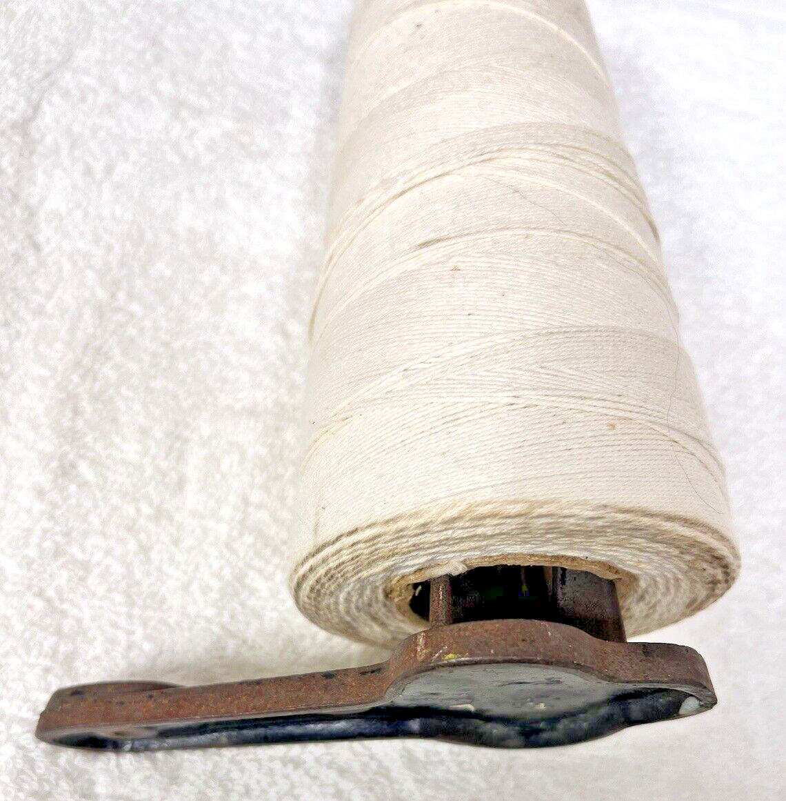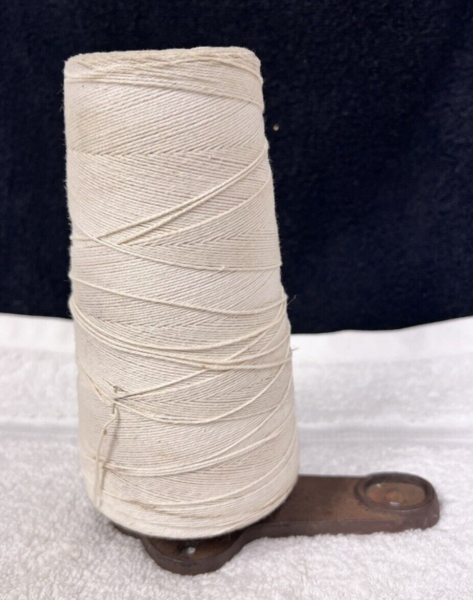 Antique Primitive Countertop String Holder Cast Metal Butcher Baker 7 1/2" tall with the string the base measures 5 5/8 x 3