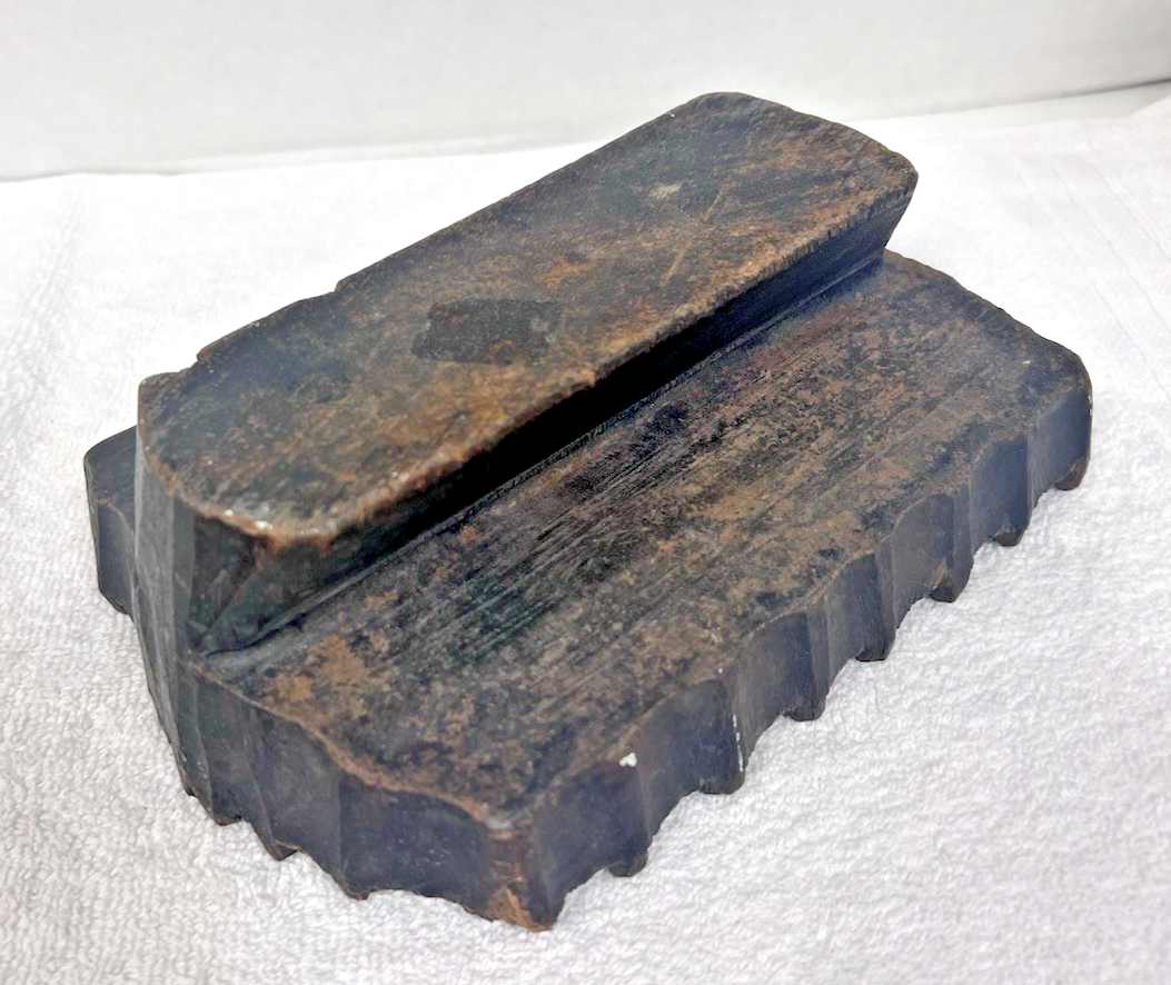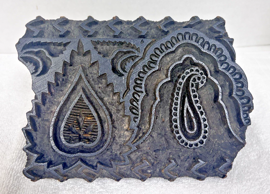 Antique Paisley Wood Carved Wallpaper Fabric Printing Black LARGE 7 3/4 x 5 1/4 in very nice shape it also is 2 3/4 inches thick