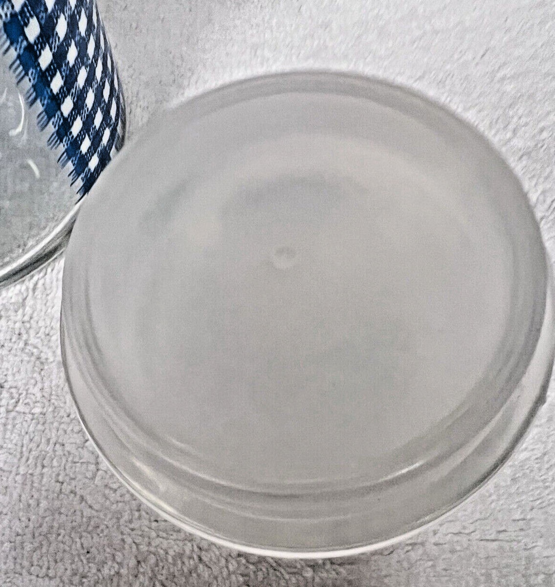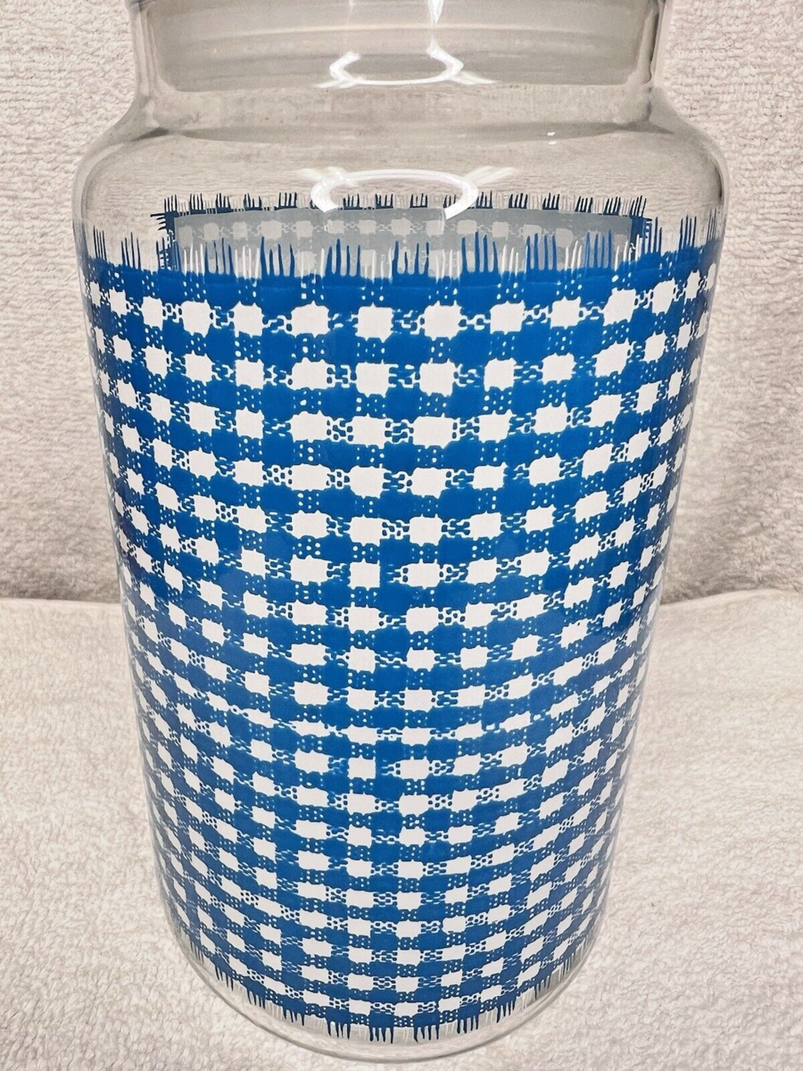 Vintage Blue & White Checked Glass Cannister Jar 8 1/2 Inch w Lid Kitchen