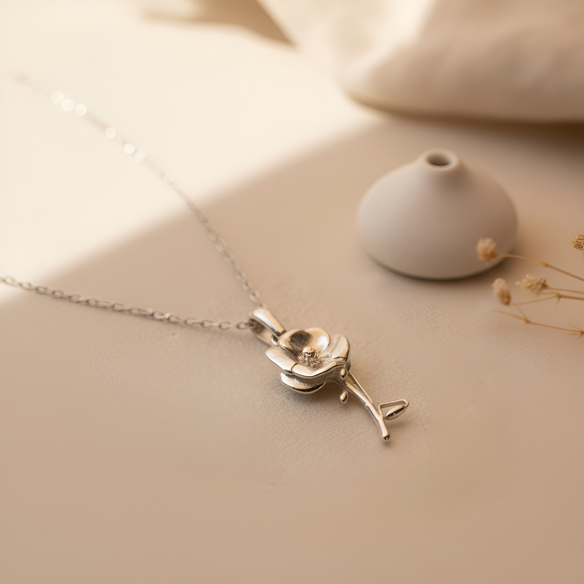 Poppy Flower Necklace | 925 Sterling Silver | Handmade Floral Jewelry