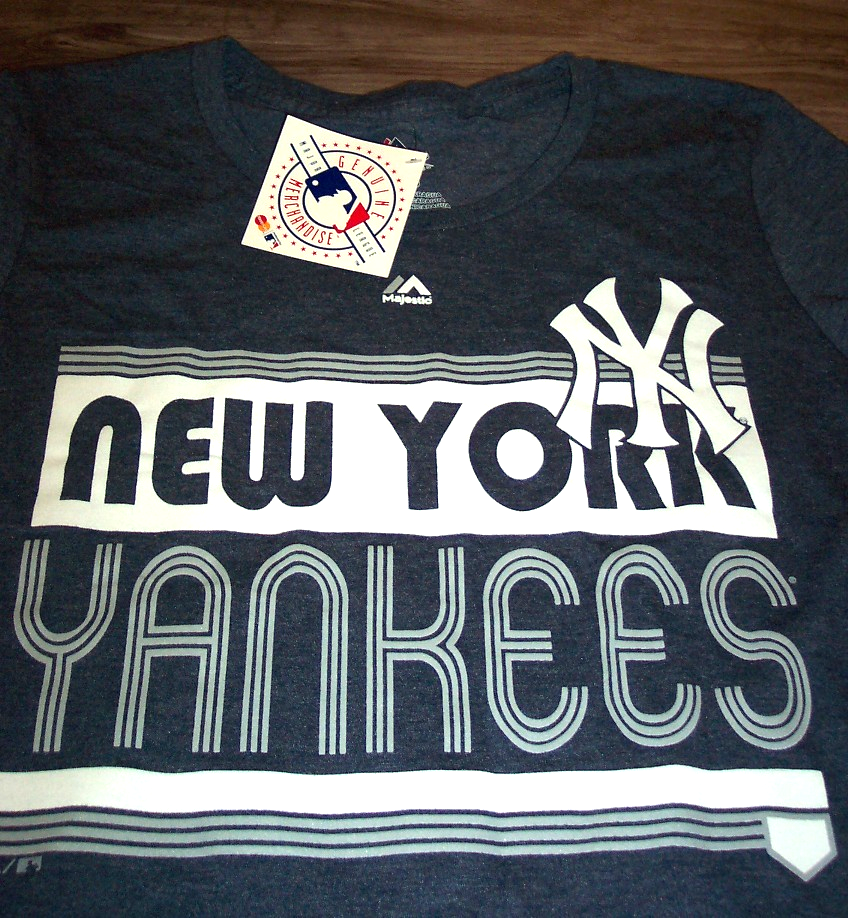 This is a WOMEN'S TEEN NEW YORK YANKEES MLB BASEBALL T-shirt. It is a Size MEDIUM and is NEW with the Tag. It is 17 1/2 inches from armpit to armpit and 25 1/2 inches in length. It is an official MAJESTIC Shirt. . Combine auctions to save on shipping. AG