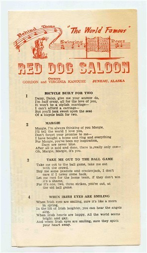 The World Famous Red Dog Saloon Juneau Alaska Song Brochure