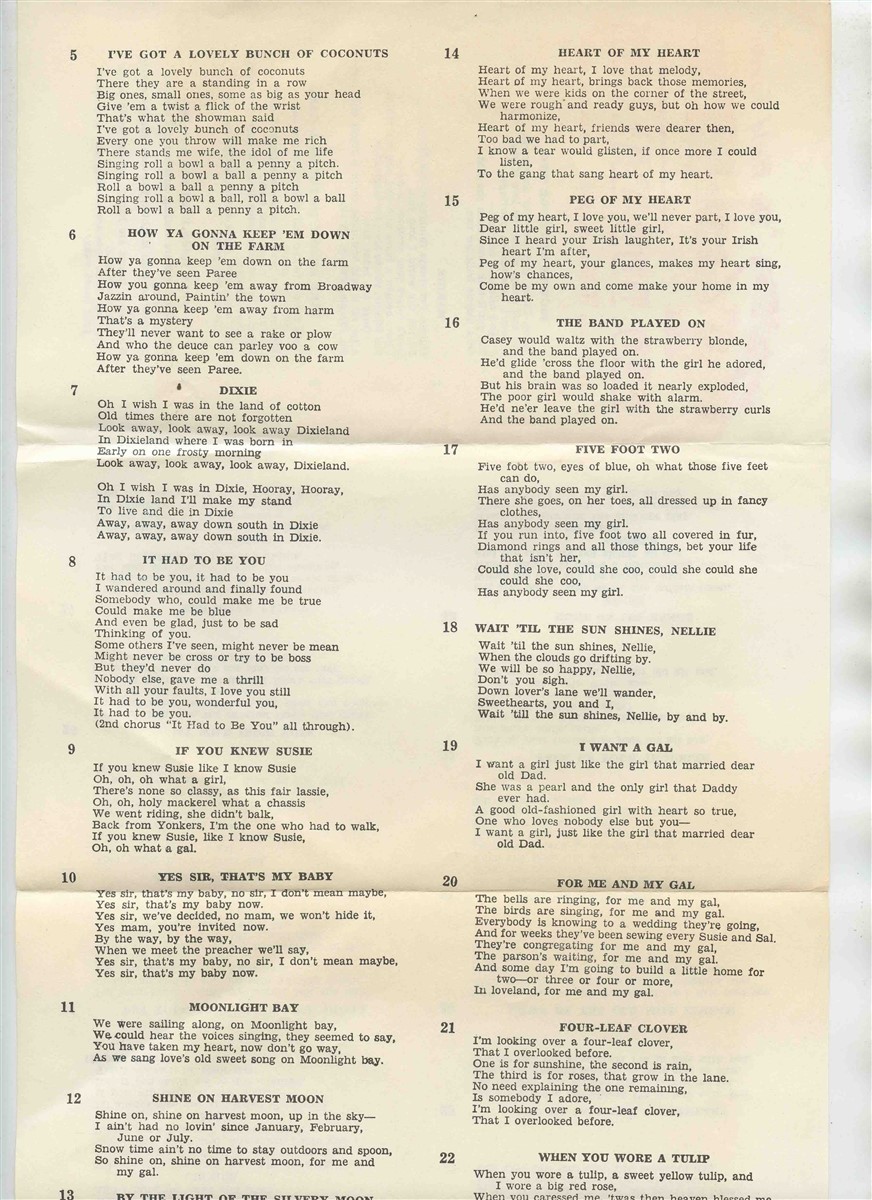 A large 2 sided single page that has been folded. The World Famous Red Dog Saloon Juneau Alaska Song Brochure . Behind Those Swinging Doors. The words to 33 songs