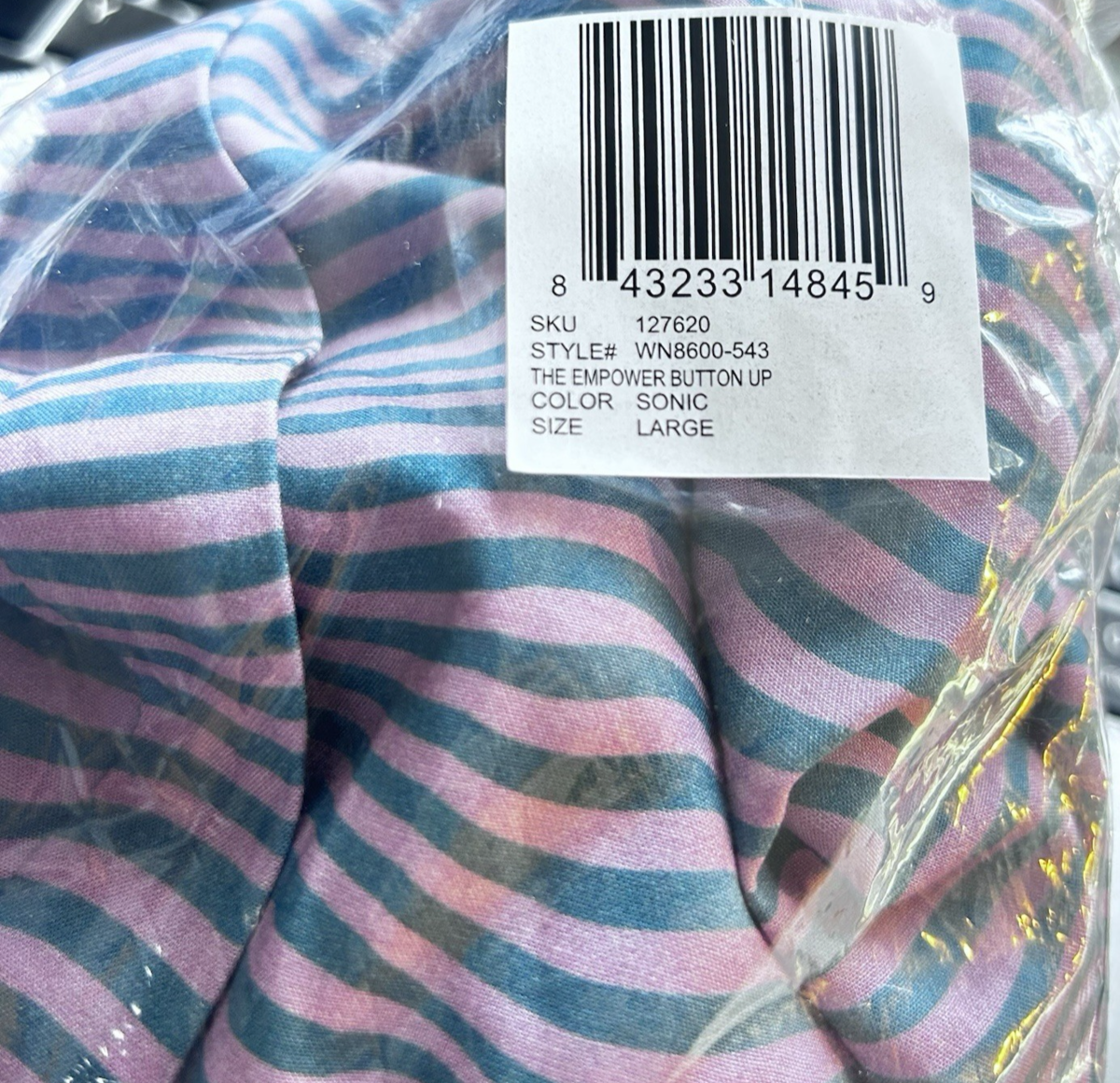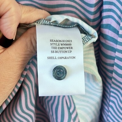 New, with tags. Unisex / Women's Large collared short sleeve shirt. Button Up. Sonic in color. Colors include Deep Pink and Blue. Very nice! Measurements are 46? chest and 31? in length. 100% rayon. Short sleeves with cuffs.