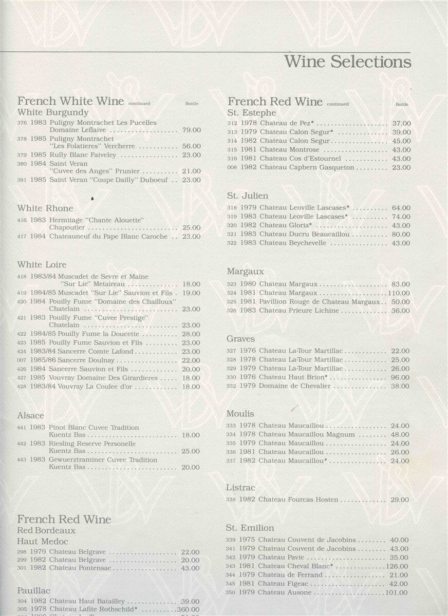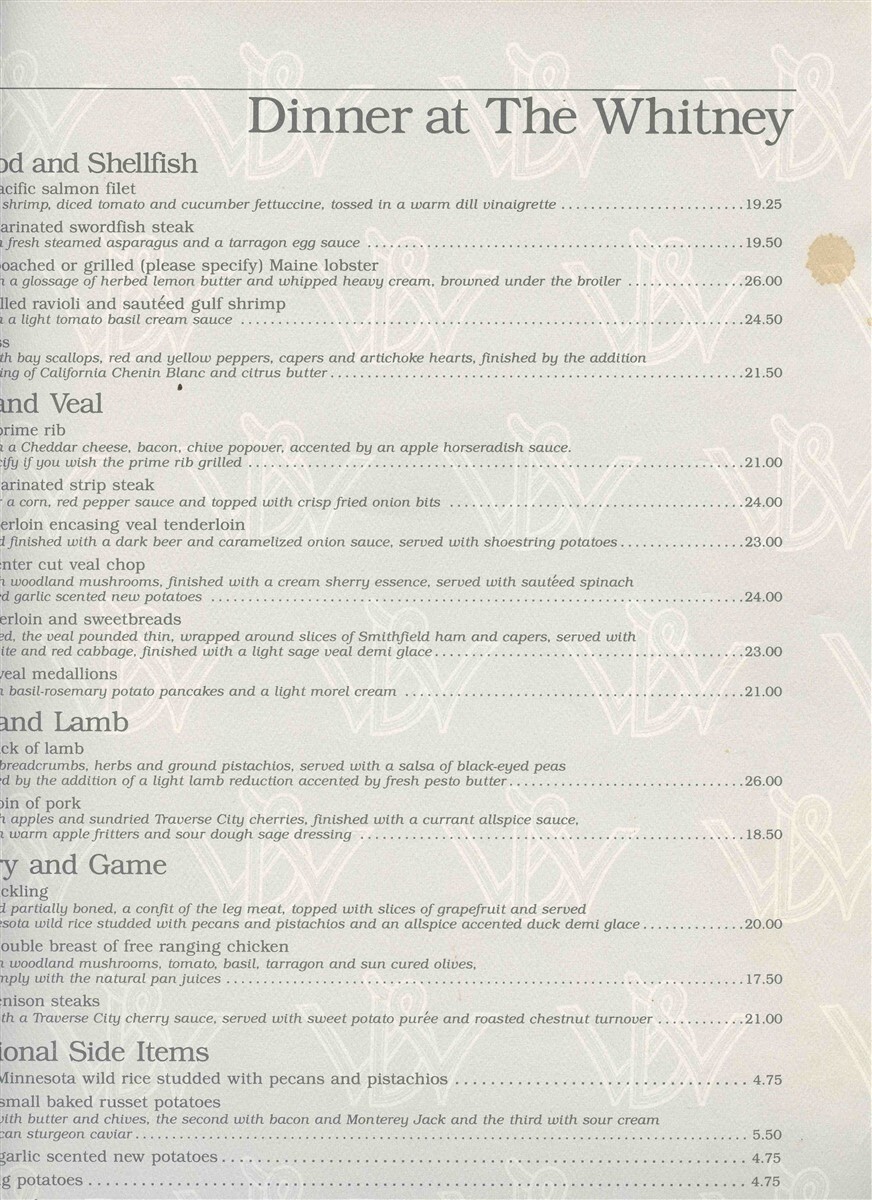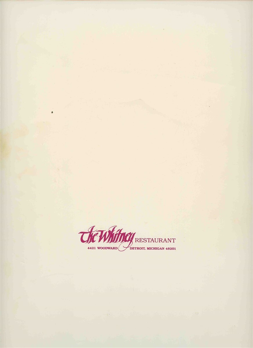 The Whitney Dinner Caviar Dessert Menus Wine List Detroit Michigan 1987