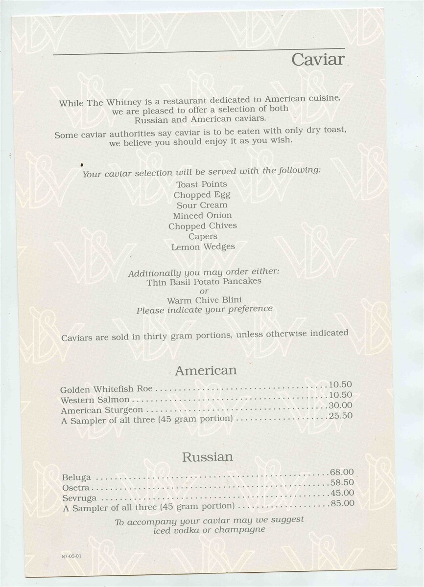 The Whitney Dinner Caviar & Dessert Menus & and 50 similar items