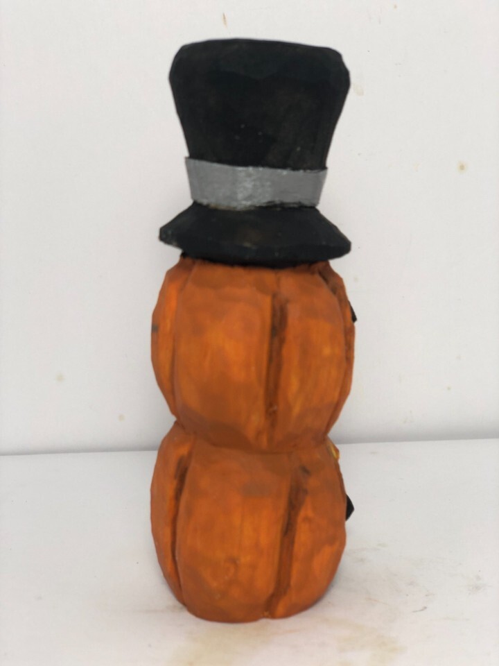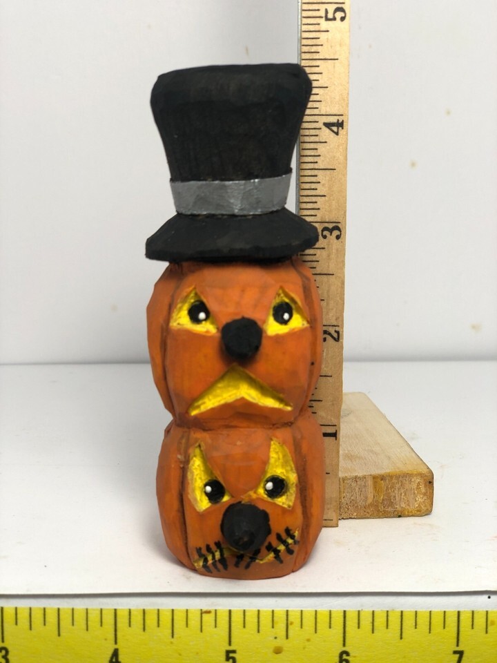 Mad Pumpkin Man Totem with Hat - Knife Carving - Halloween Ornament