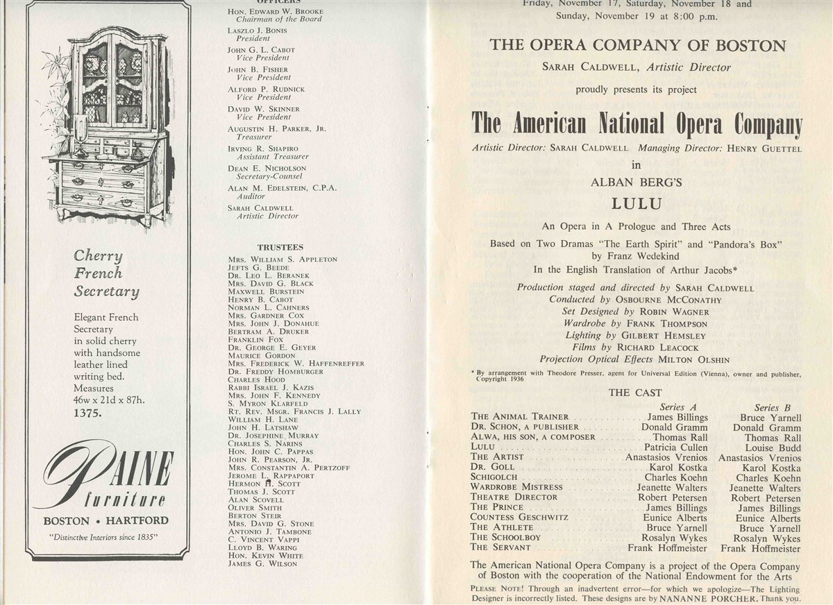 1967 Opera Company of Boston Program LULU and similar items