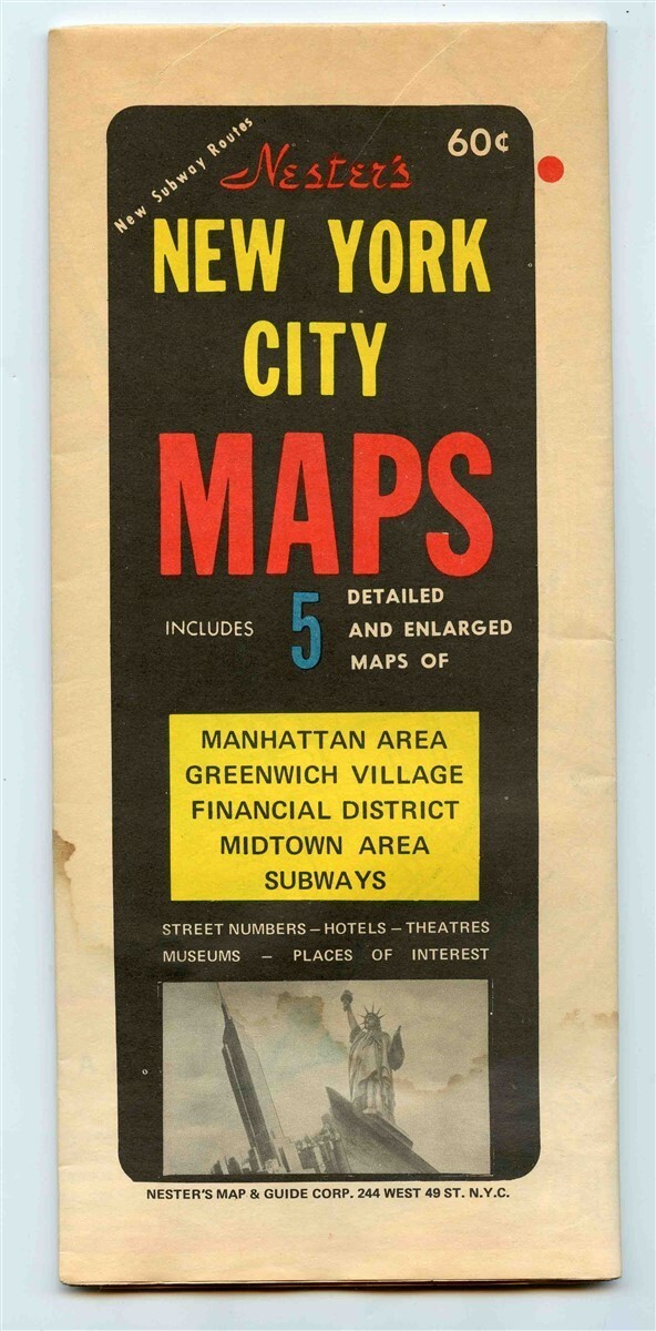 Nestor's New York City Maps. Includes 5 Detailed and Enlarged maps of Manhattan Area, Greenwich Village, Financial District, Midtown Area and Subways . Plus lots of information on Public Places, Hotels, Places of Worship, Theatres, Restaurants, Airlines, Museums and much more.
