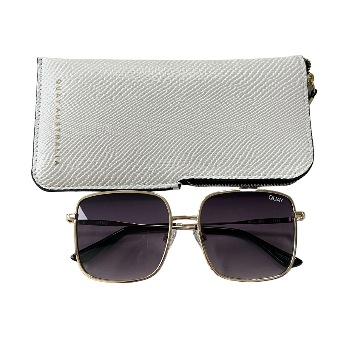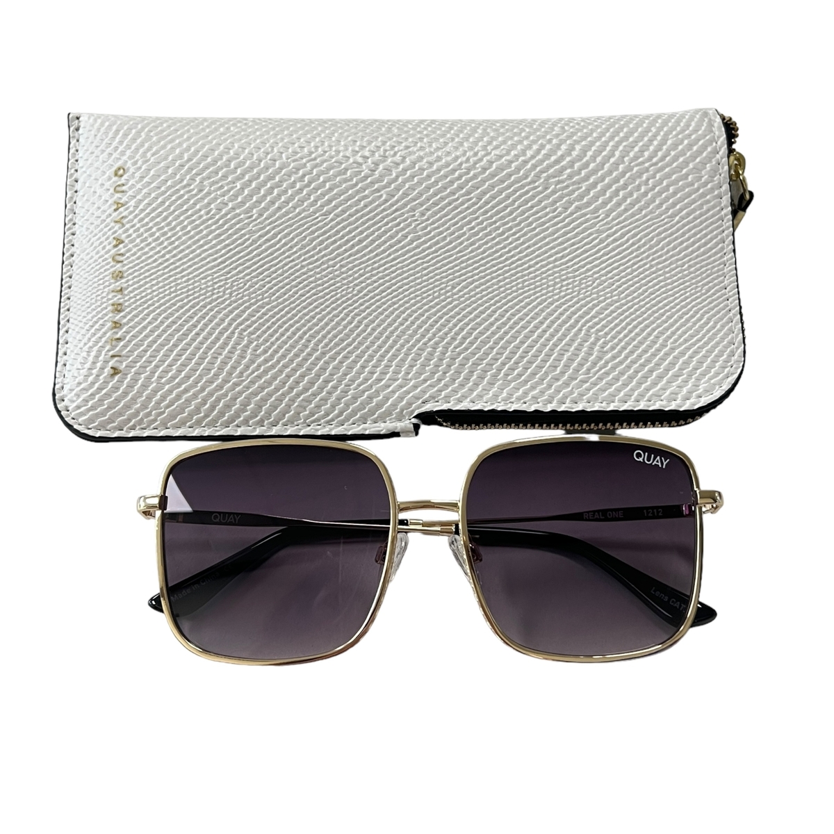 Quay Australia Real One Oversized Sunglasses Gold Smoke