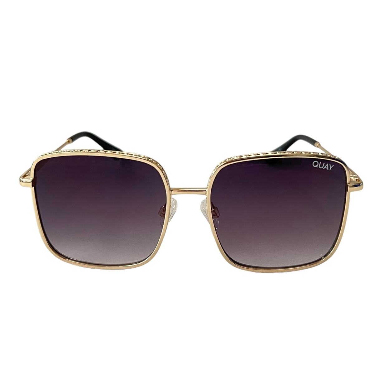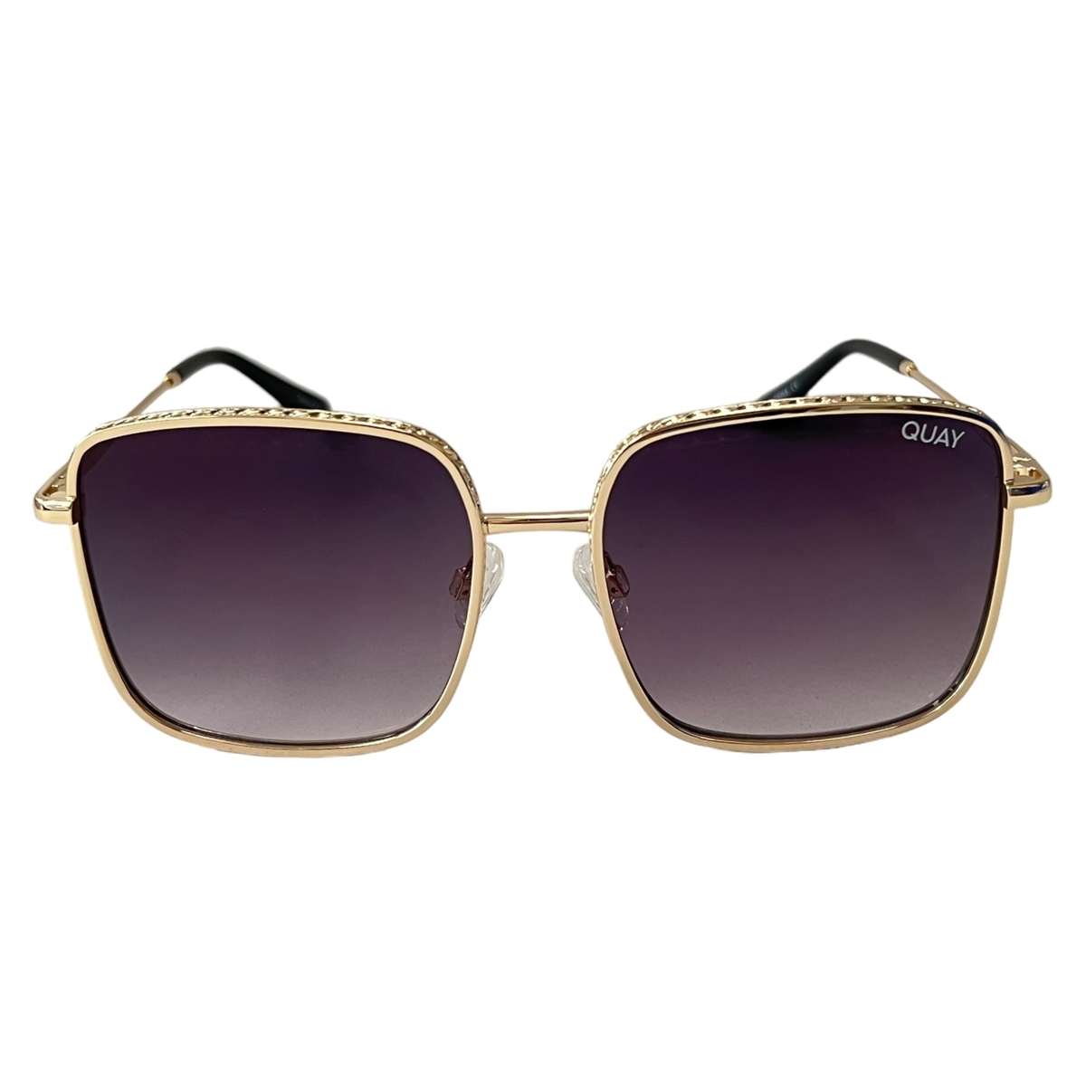 Made for the badass babe with an edge. The Real One Sunglasses in Gold Purple from Quay feature an ornate gold metal frame detailing and faded smoke lenses. These effortless shades are only for boss babes who keep it real.