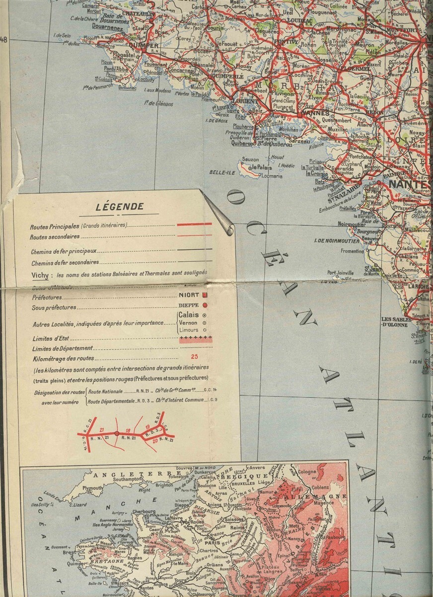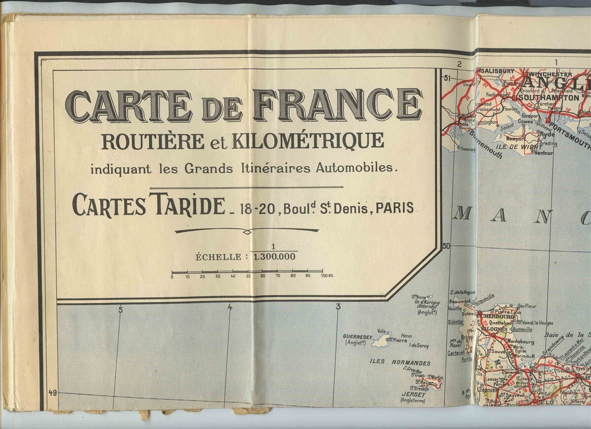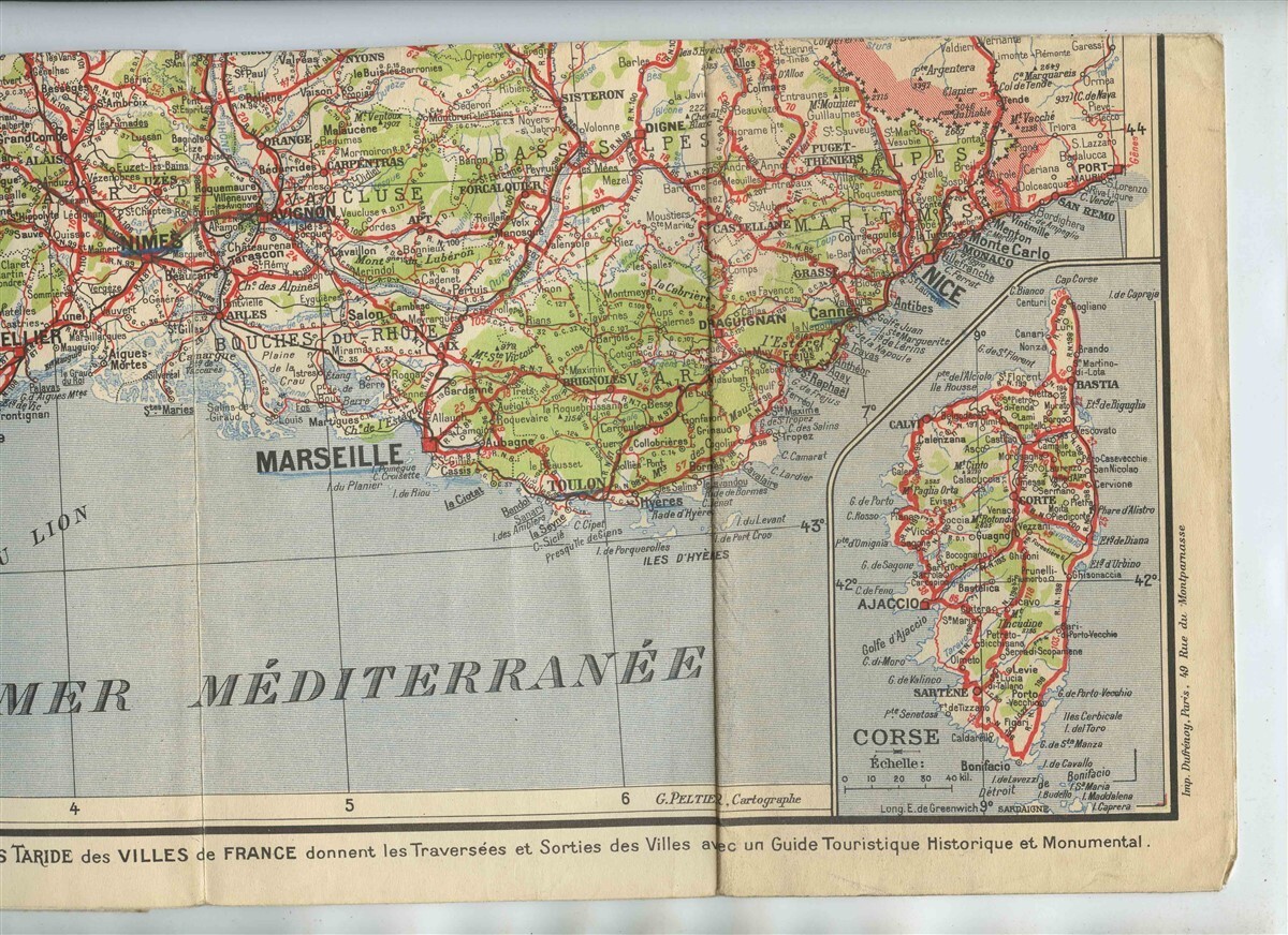 A colorful fold out Cartes Taride Routes De France Map . Circa 1930's