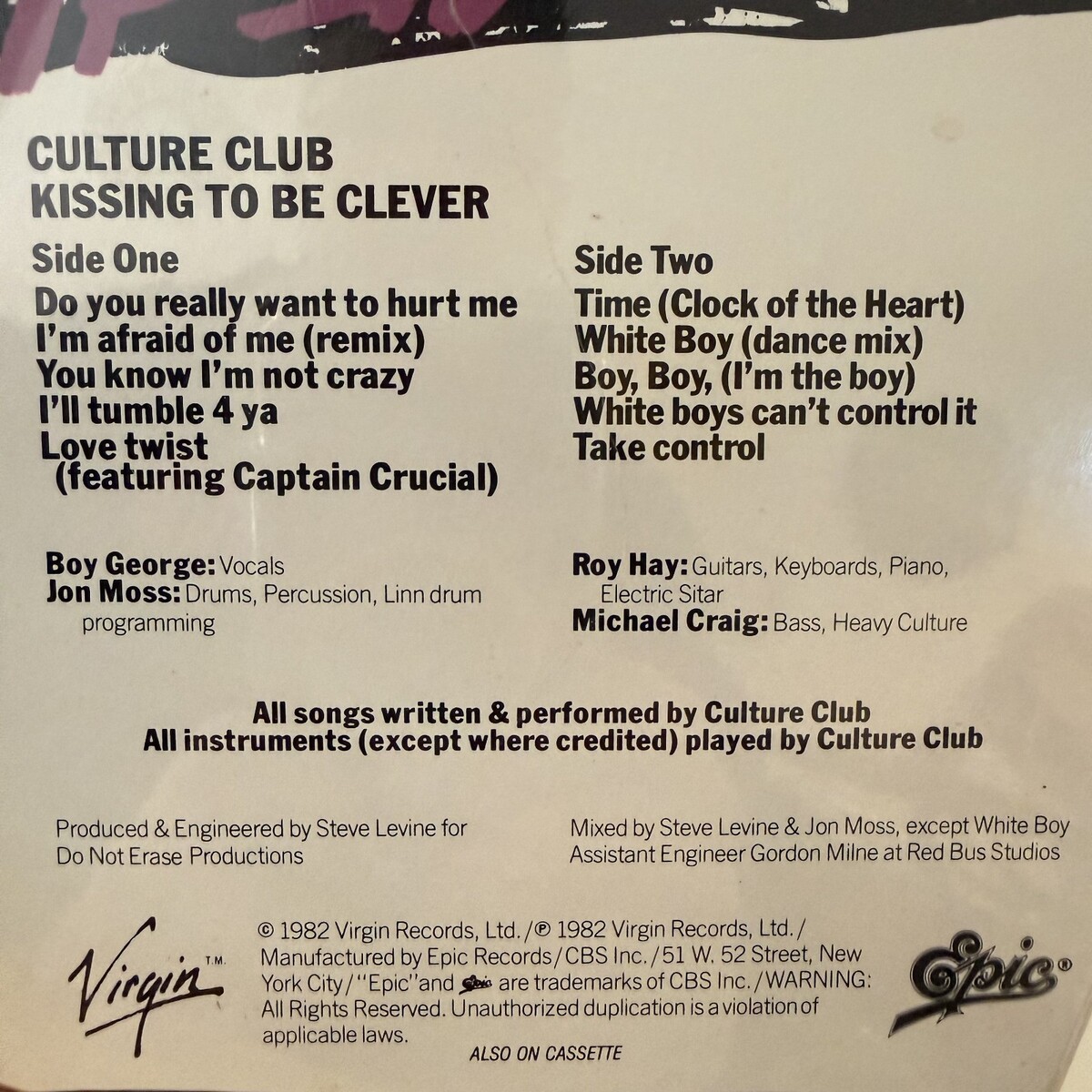 Culture Club Kissing To Be Clever Vinyl LP Epic FE 38398 NM #1 Press Hype Shrink