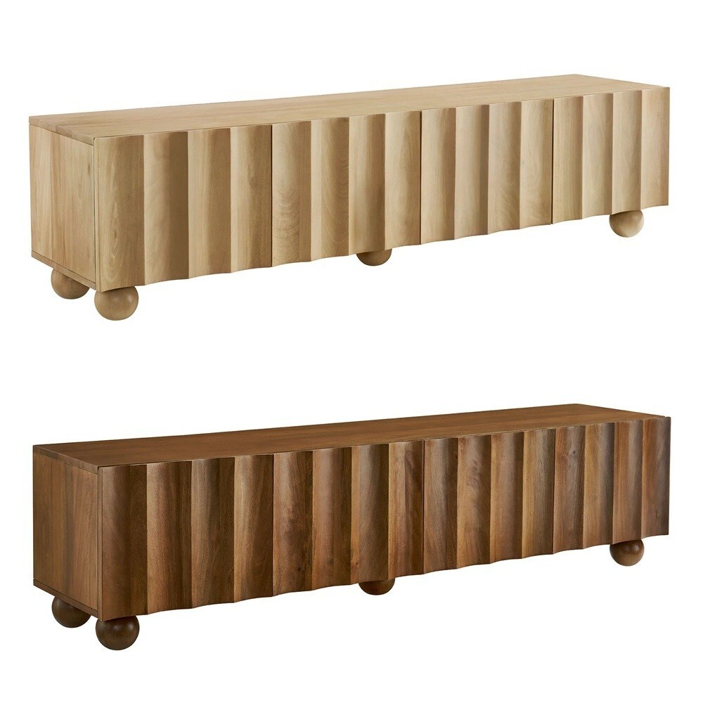 Scalloped 71" Solid Mango Wood Modern TV Stand in Walnut or Natural