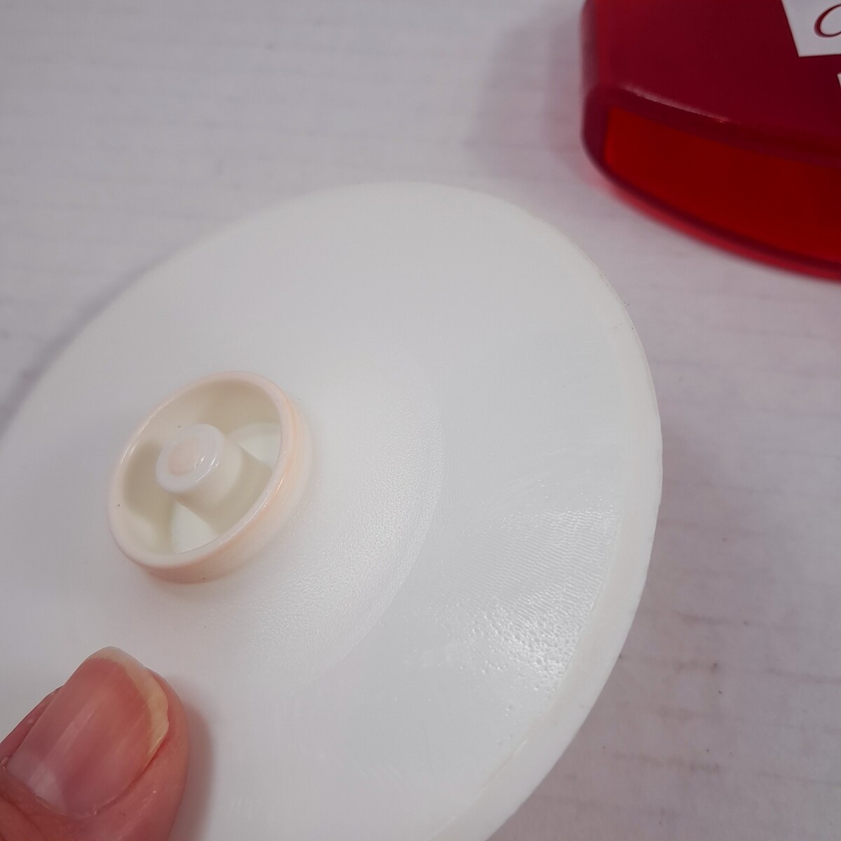 Red plastic cutter with white wheel. Wear/scuffs/scratches as shown.