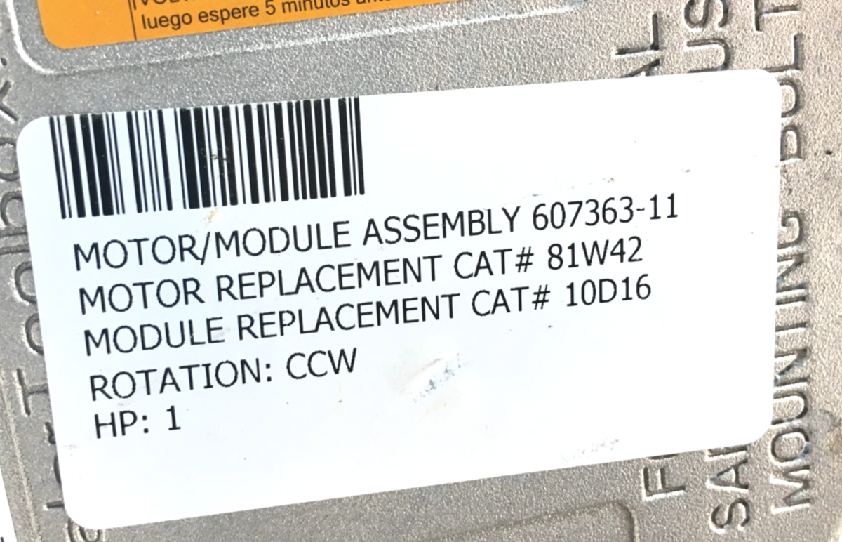 This is Genteq Endura HW-13 1HP 115VAC Lennox 607363-11 81W42 CCW Lead End rotation used part.