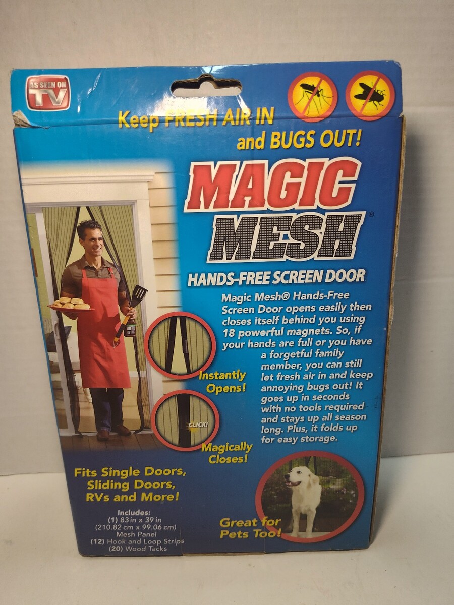 Enjoy fresh air while keeping bugs out with this Magic Mesh Hands-Free Screen Door! This magnetic mesh curtain opens easily and automatically closes behind you using built-in magnets?perfect for high-traffic doorways, pets, and busy households.