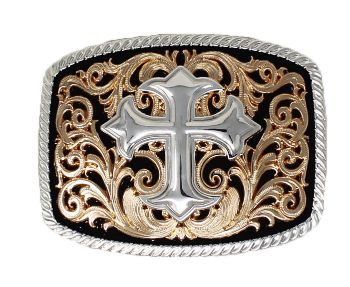 Challenger 2" Western Two-Tone Cross Floral Engraved Belt Buckle 2812