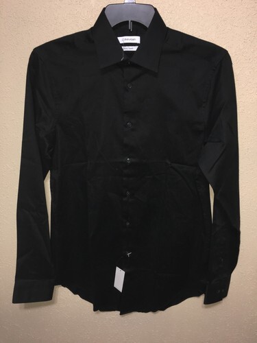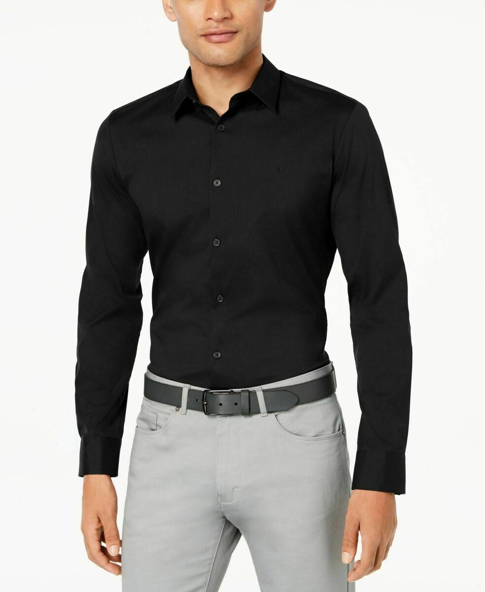 Calvin Klein Men's Slim-Fit Cotton Stretch Black Long-Sleeve Shirt sz 32/33 NEW