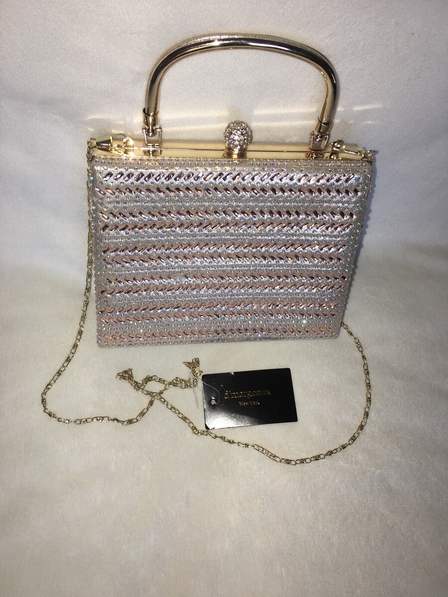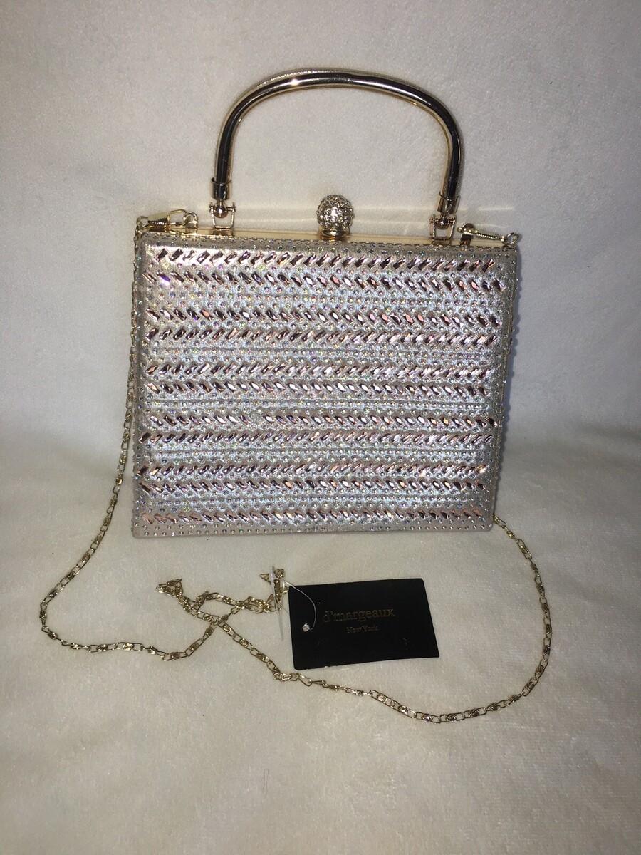 D'Margeaux Top Handle Clutch Handbag bag Champagne gold beaded NEW