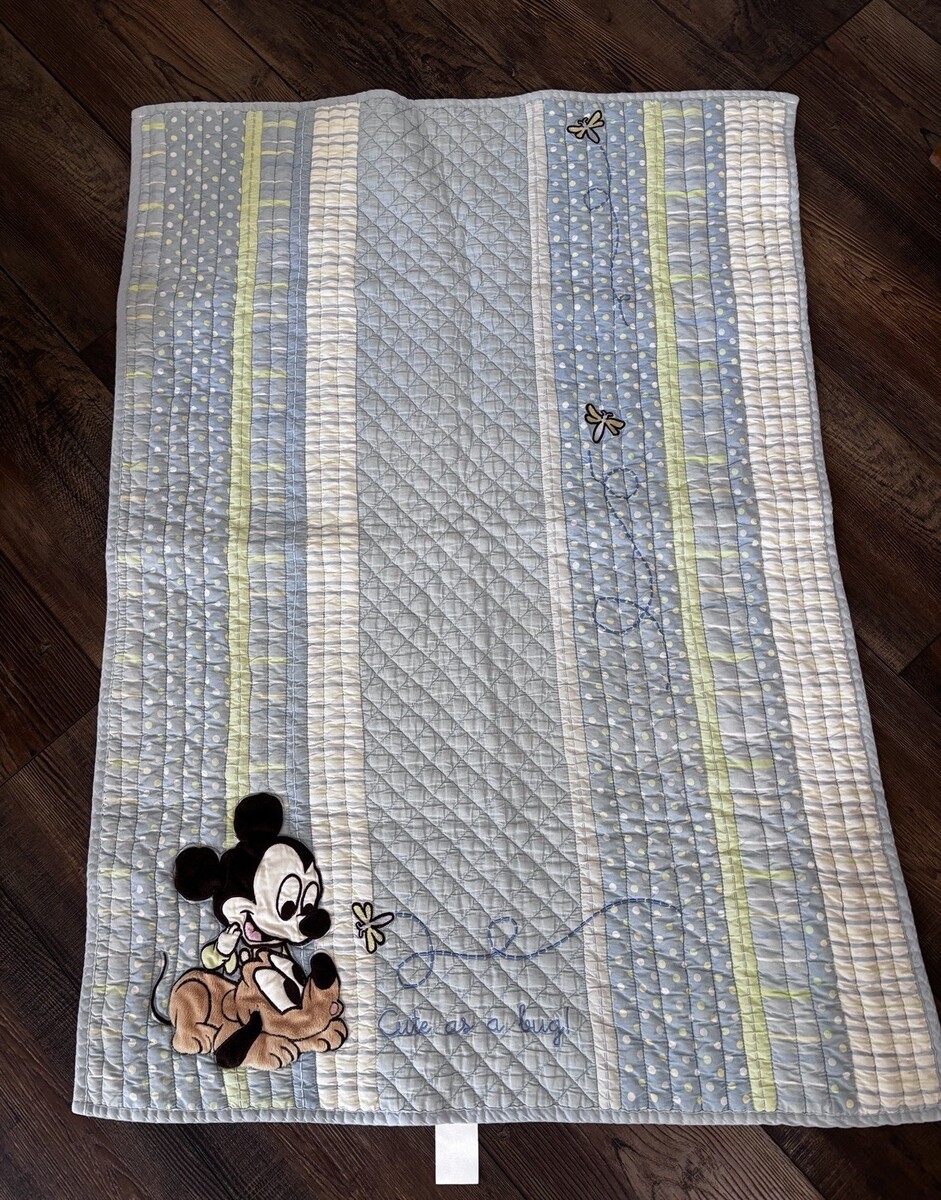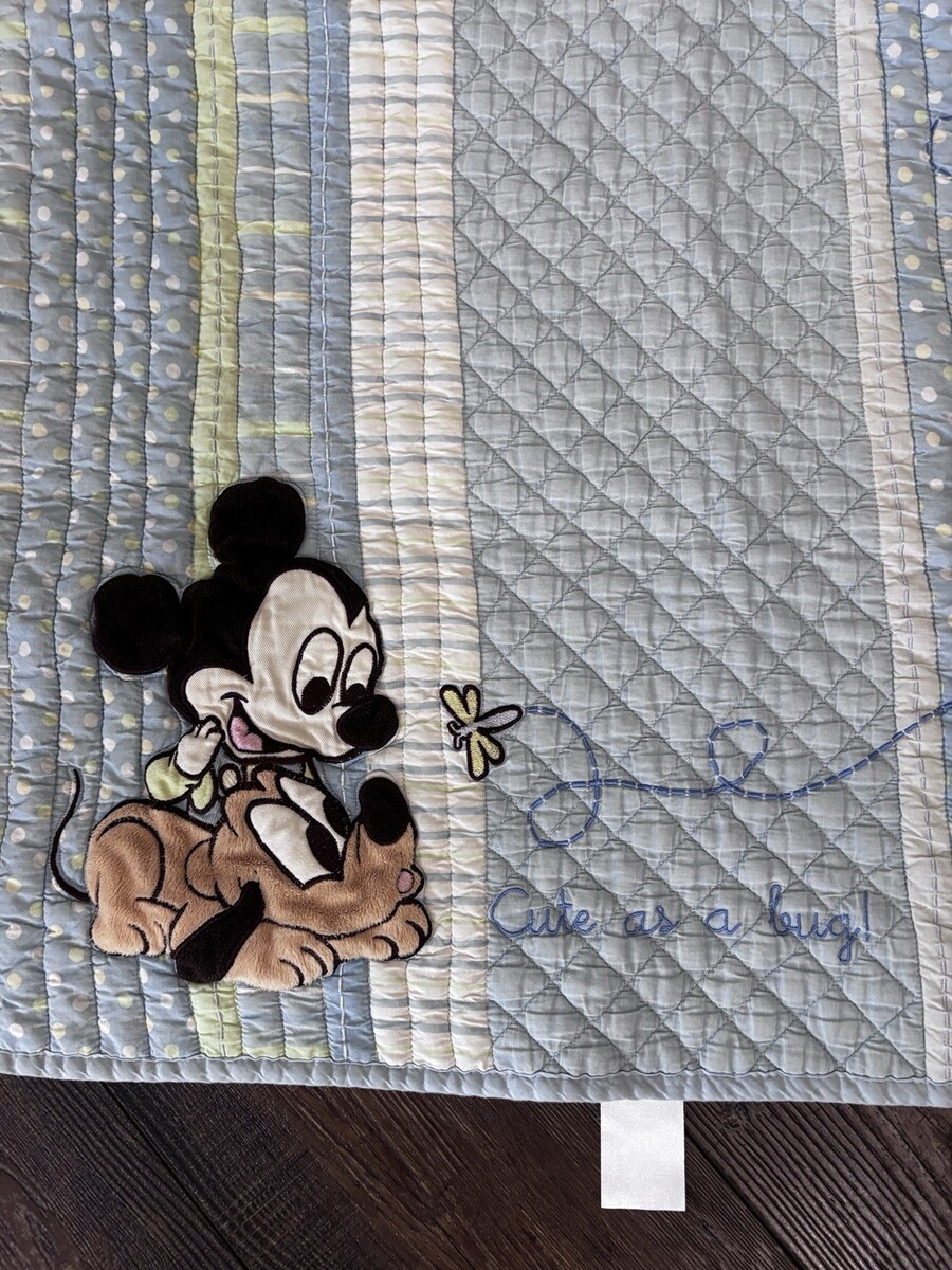 Disney Baby "Cute As A Bug" Blanket Mickey Mouse Pluto Embroidered Quilt 30x40
