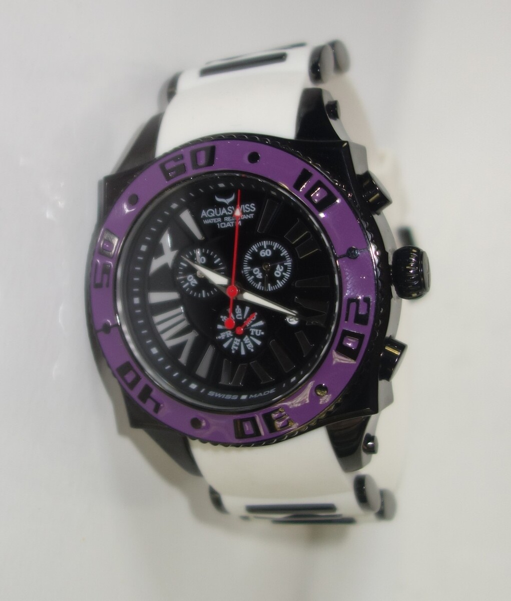 AQUASWISS Chronograph Swiss Quartz Large 50 MM Watch Stainless Steel PURPLE NEW