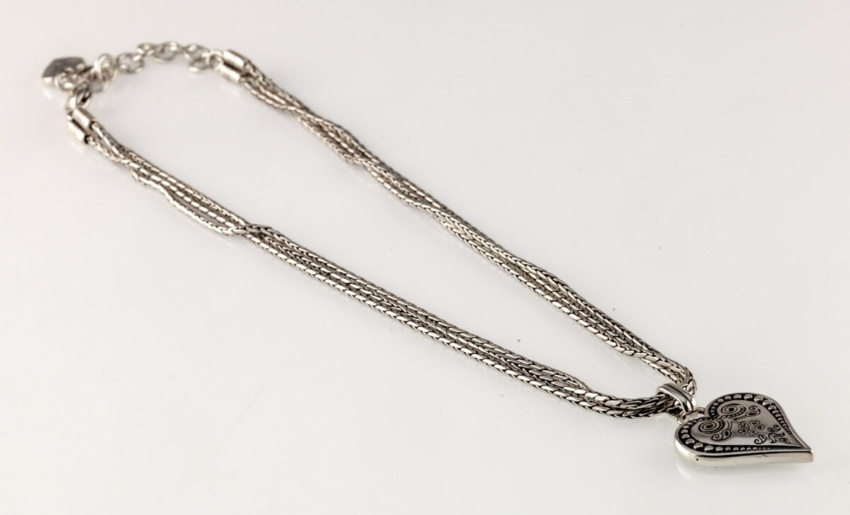 Brighton Silverplated Three Strand Heart Pendant 18" Total Length (Adjustable)