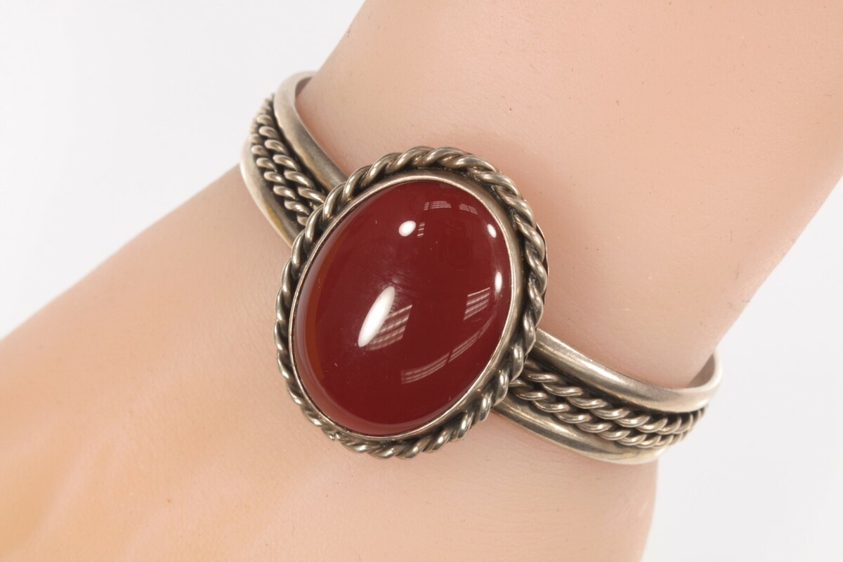 Vintage Sterlingsilber Unglaubliche Dunkle Granat Armreif Hergestellt In Mexiko