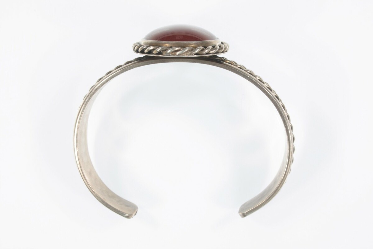 Wunderschones Vintage-Manschettenarmband aus Sterlingsilber mit dunklem Granat, hergestellt in Mexiko