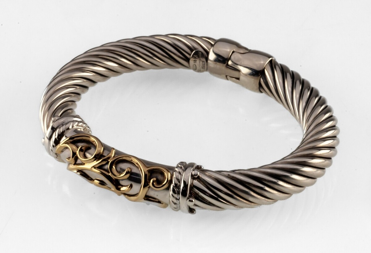 Flli Menegatti Kabelarmband aus Sterlingsilber und 18 Karat Gelbgold, 41,7 Gramm