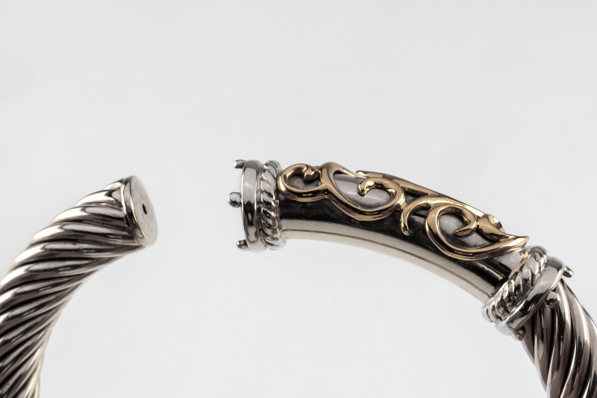 Sterlingsilber Und 14K Gelbgold Spiral Kabel Armband 6,25"
