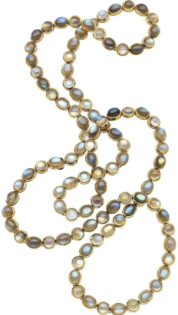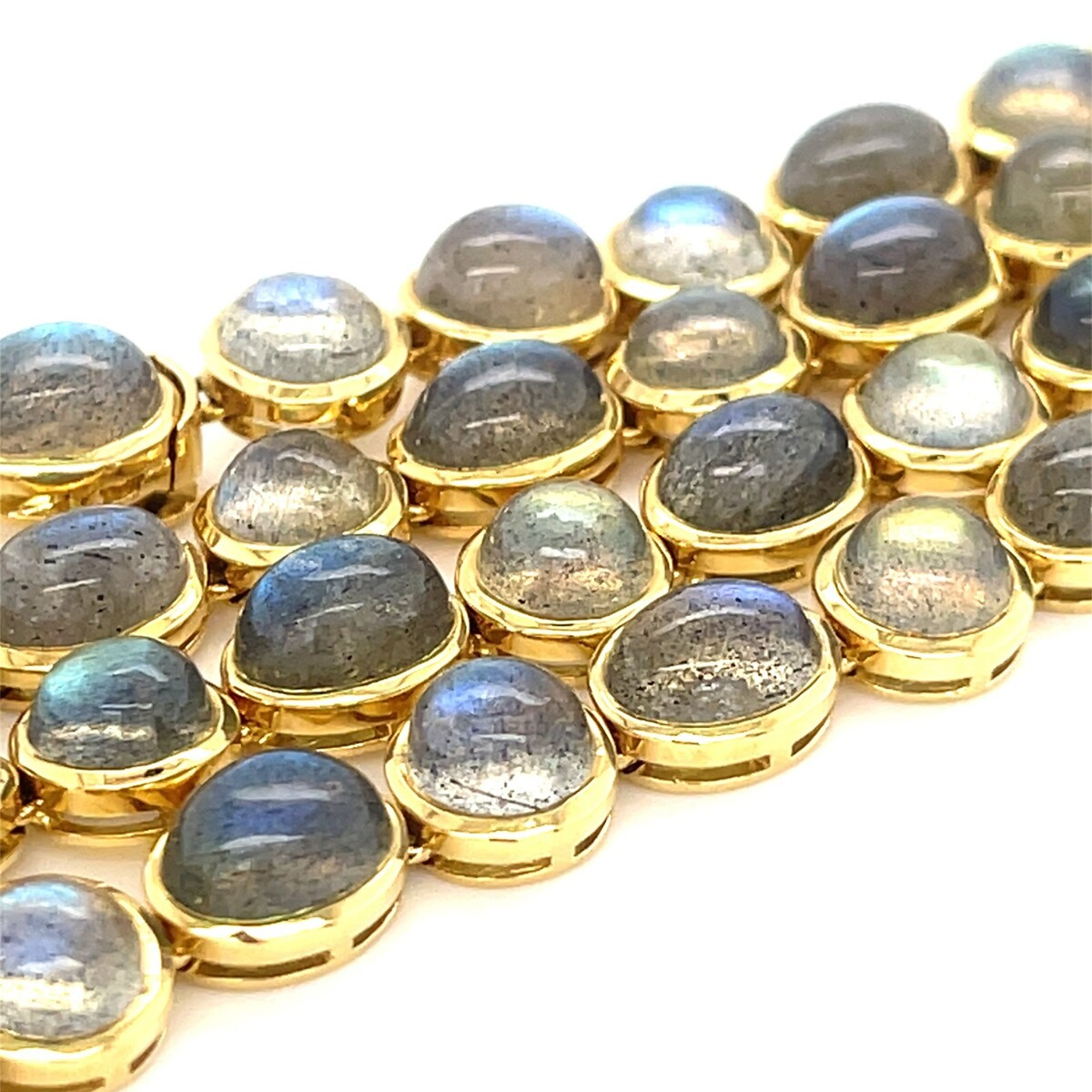Halskette mit Labradorit-Cabochon-Kette aus 18 Karat Gelbgold, 91,4 cm, 131,55 ct