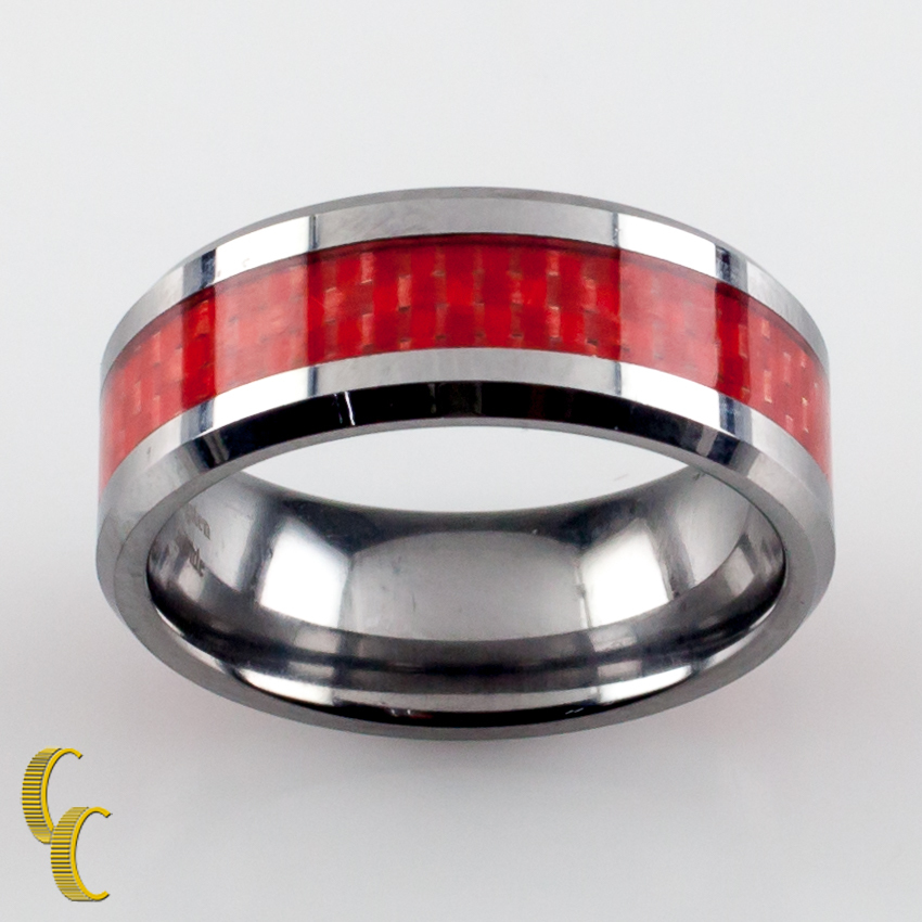Ewiger Band -Tungsten -Carbid -Ring mit strukturierter roter Streifengroße 8.25