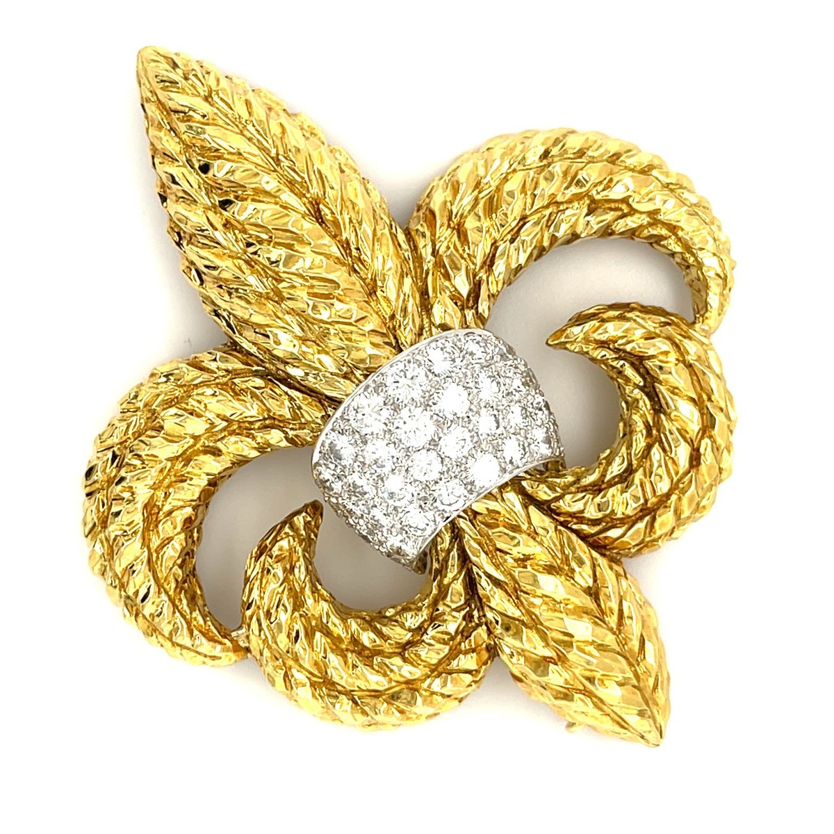 David Webb 18 Karat Gelbgold und Platin 1,60 ct Diamant-Fleur-de-Lis-Brosche