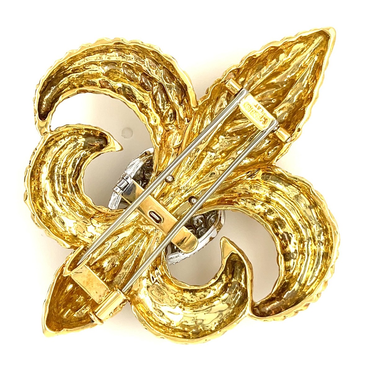 David Webb 18K Gelbgold Und Platin 1,60 Ct Diamant Fleur De Lis Brosche