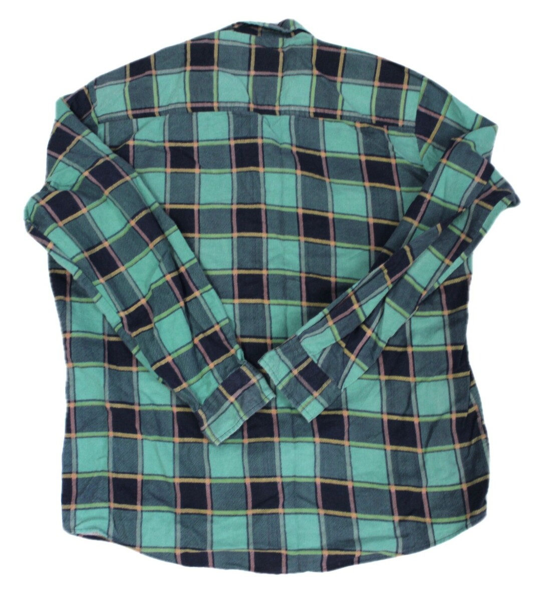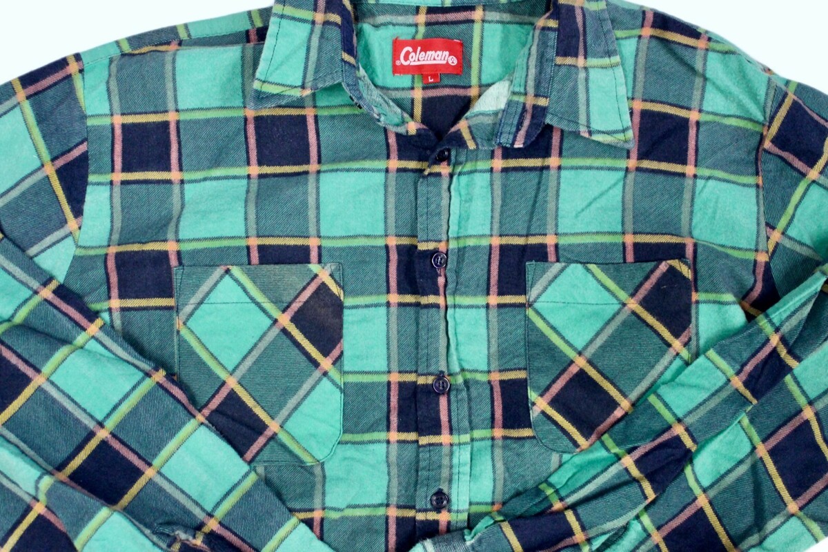 VTG Coleman Flannel Shirt Men's L 100% Cotton Green Windowpane Plaid Grunge