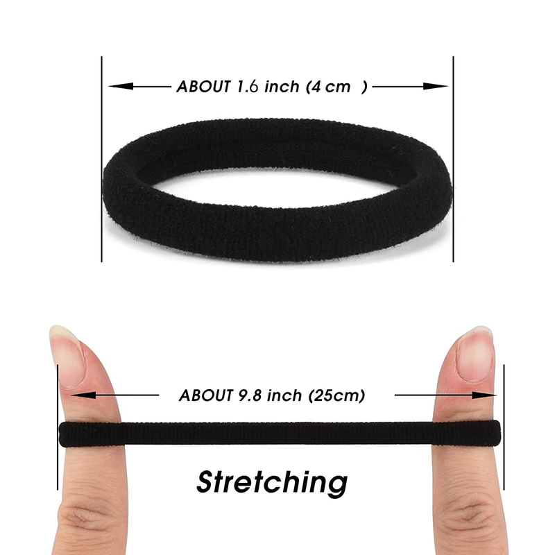 50PCS Black Hair Ties,Cotton Seamless Ponytail Holders,No Damage Elastics Hair Bands