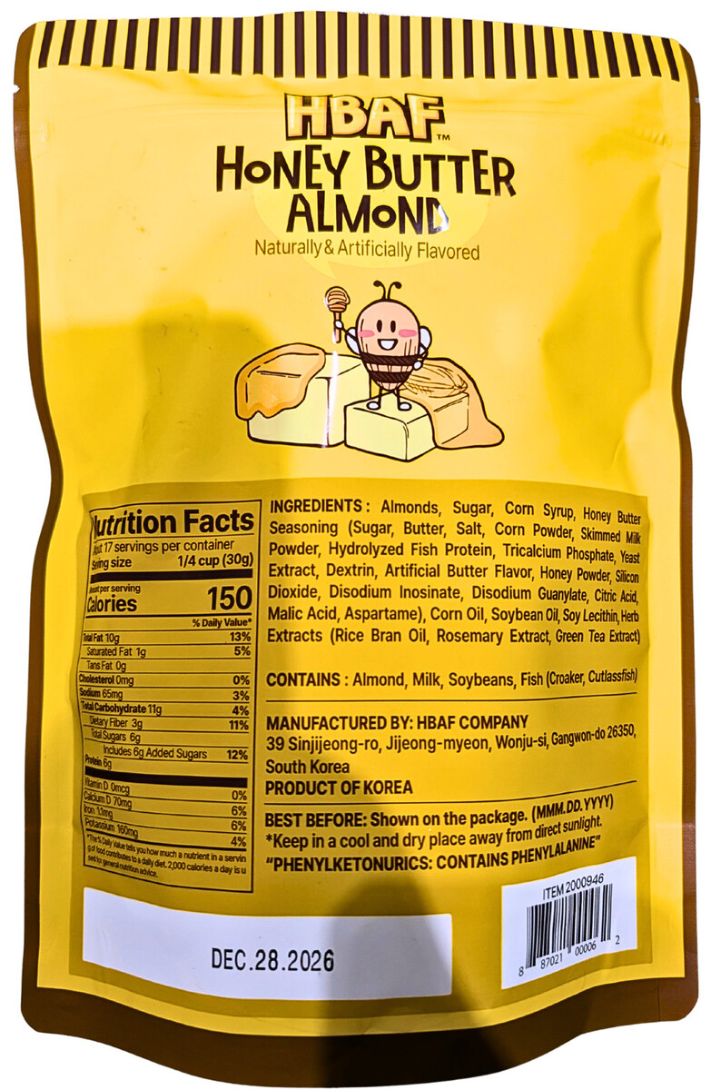 HBAF Honey Butter Almonds 17.64 Ounce Bag EXP 12/2026
