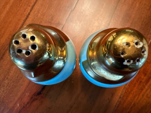 Vintage Antique Lusterware Turquoise Gold Leaf Salt and Pepper Pearl Rare