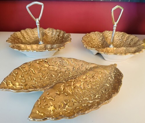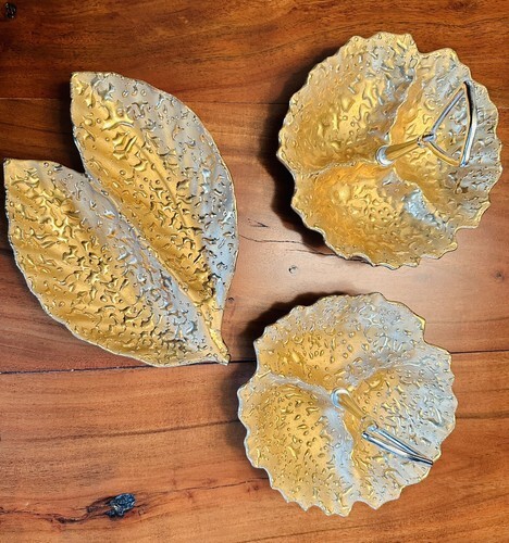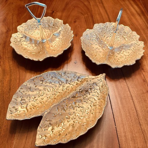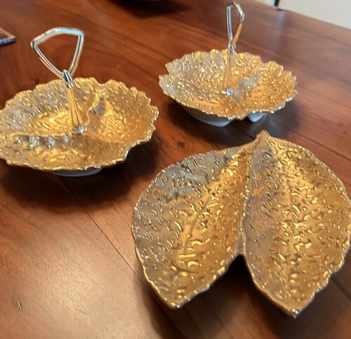 MCM WEEPING BRIGHT GOLD HAND PAINTED 22K GOLD 2TRINKET DISH 8”+Double leaf Candy