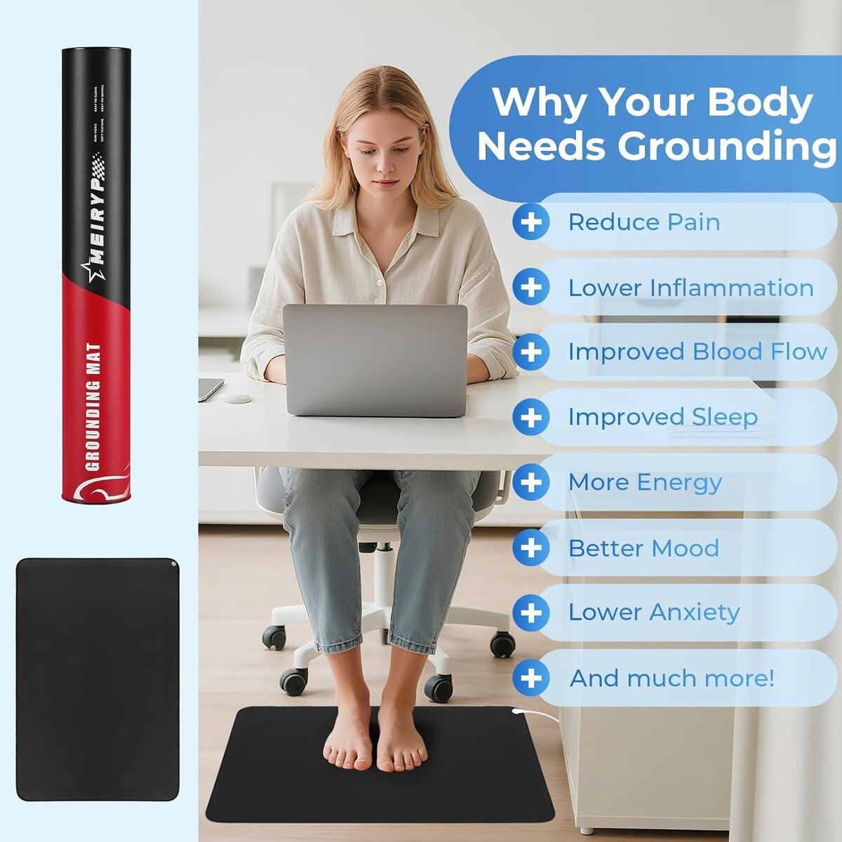 Durable Indoor Grounding Pad - 24"x16" with Carbon Fiber Technology for Healing