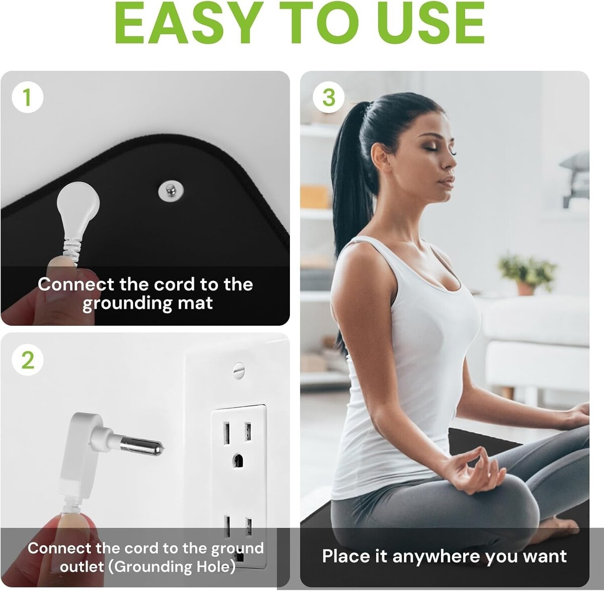 Plug it into the ground socket in your outlet. The grounding mat does not carry electricity, ensuring safety during use.