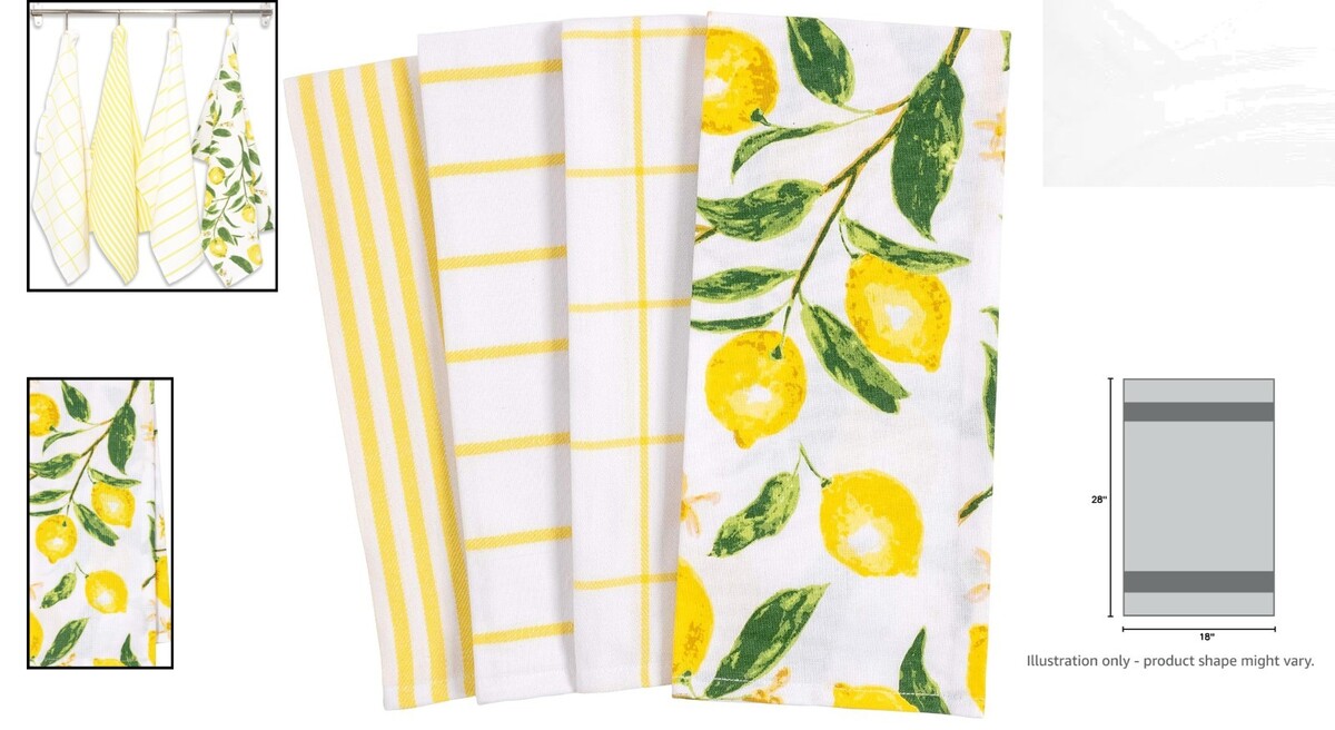Eco-Friendly Lemon Print Dish Towel Set - 4 and 17 similar items