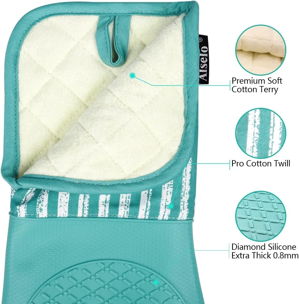 Crafted from food-grade silicone and lined with cotton terry, they combine functional safety with comfort, making it simple to maneuver around the hottest of tasks, from grilling to baking. The unique non-slip design ensures you have a confident grip on cookware, reducing stress in the kitchen.