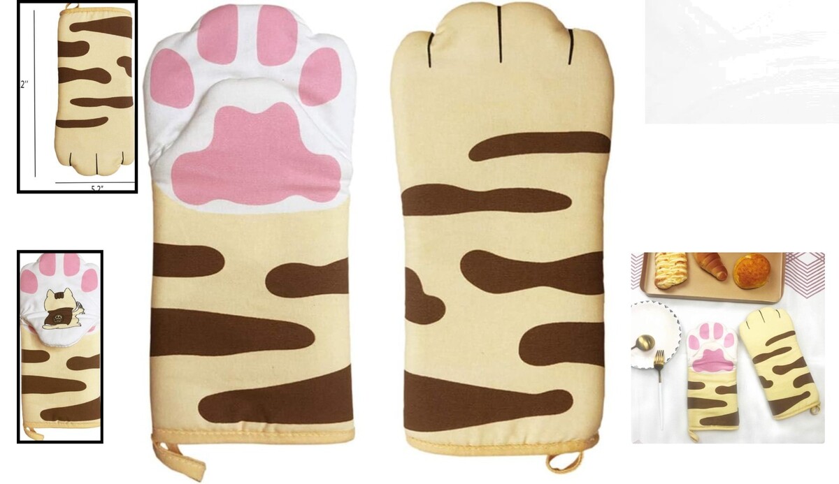 Embrace your love for feline companions while ensuring maximum safety in the kitchen with our delightful Cat Claw Oven Mitts. Crafted from a blend of cotton and polyester, these mitts are not only adorable but resilient, providing you with a reliable grip and extraordinary heat protection.