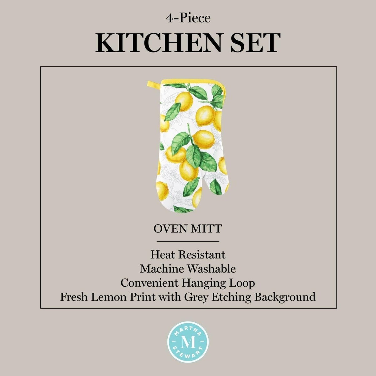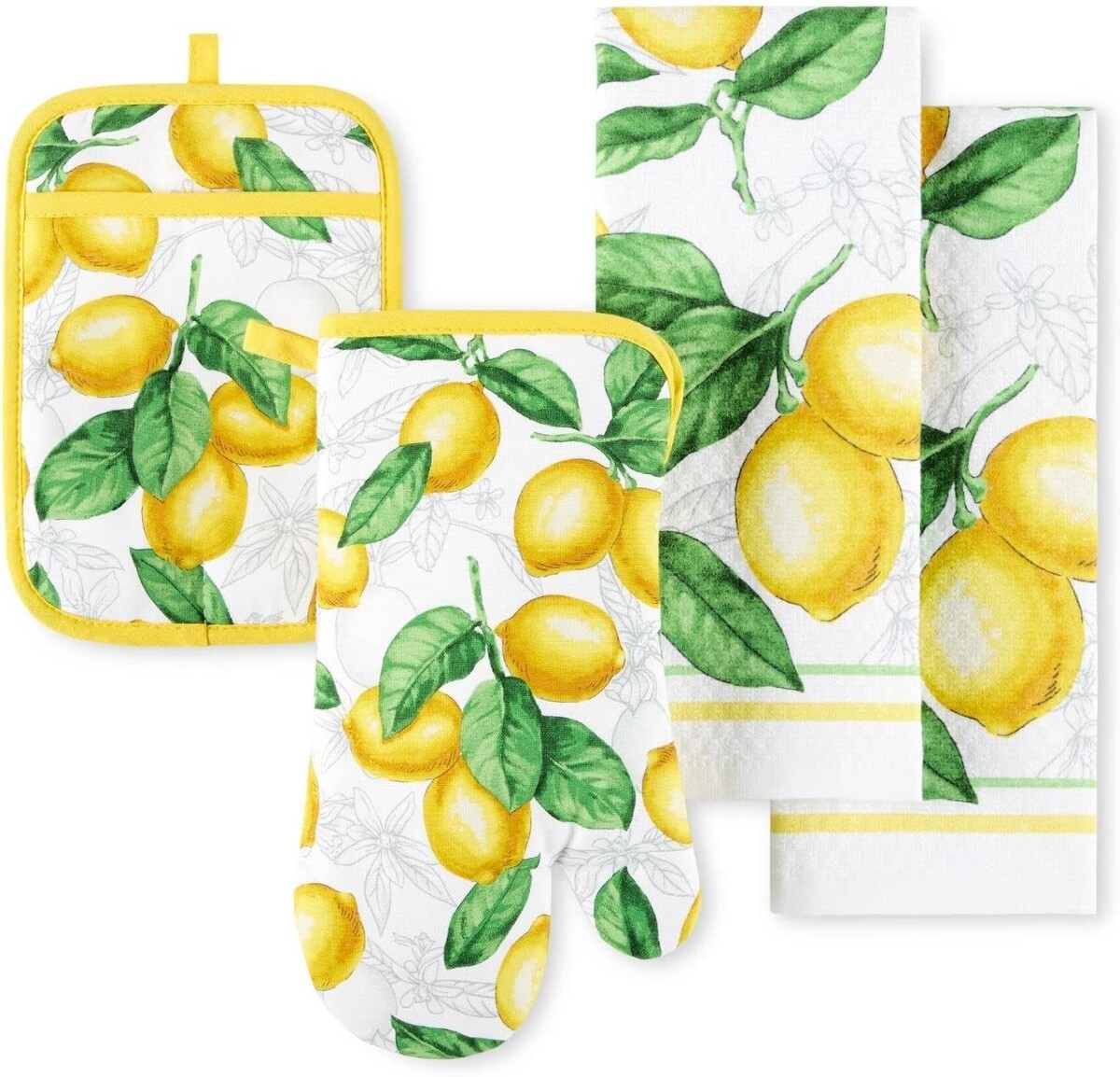 Elegant Lots of Lemons 4-Piece Kitchen Textile Set - Cotton Heat Resistant